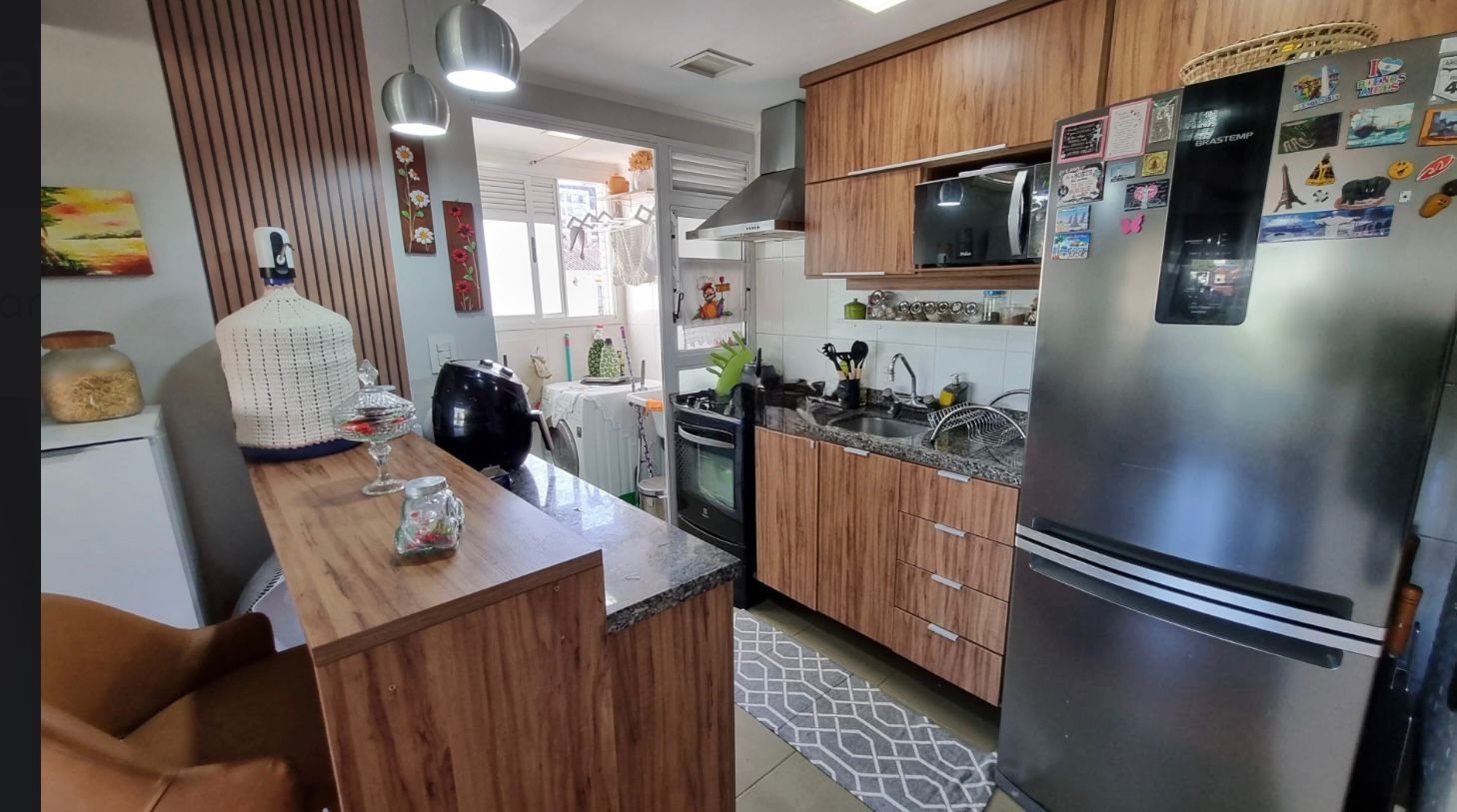 A cozinha americana com churrasqueira e a área de serviço são espaçosas e funcionais, proporcionando praticidade no dia a dia. Além disso, o imóvel conta com gás individual, aquecimento a gás e 3 ar condicionado, garantindo conforto em todas as estações.