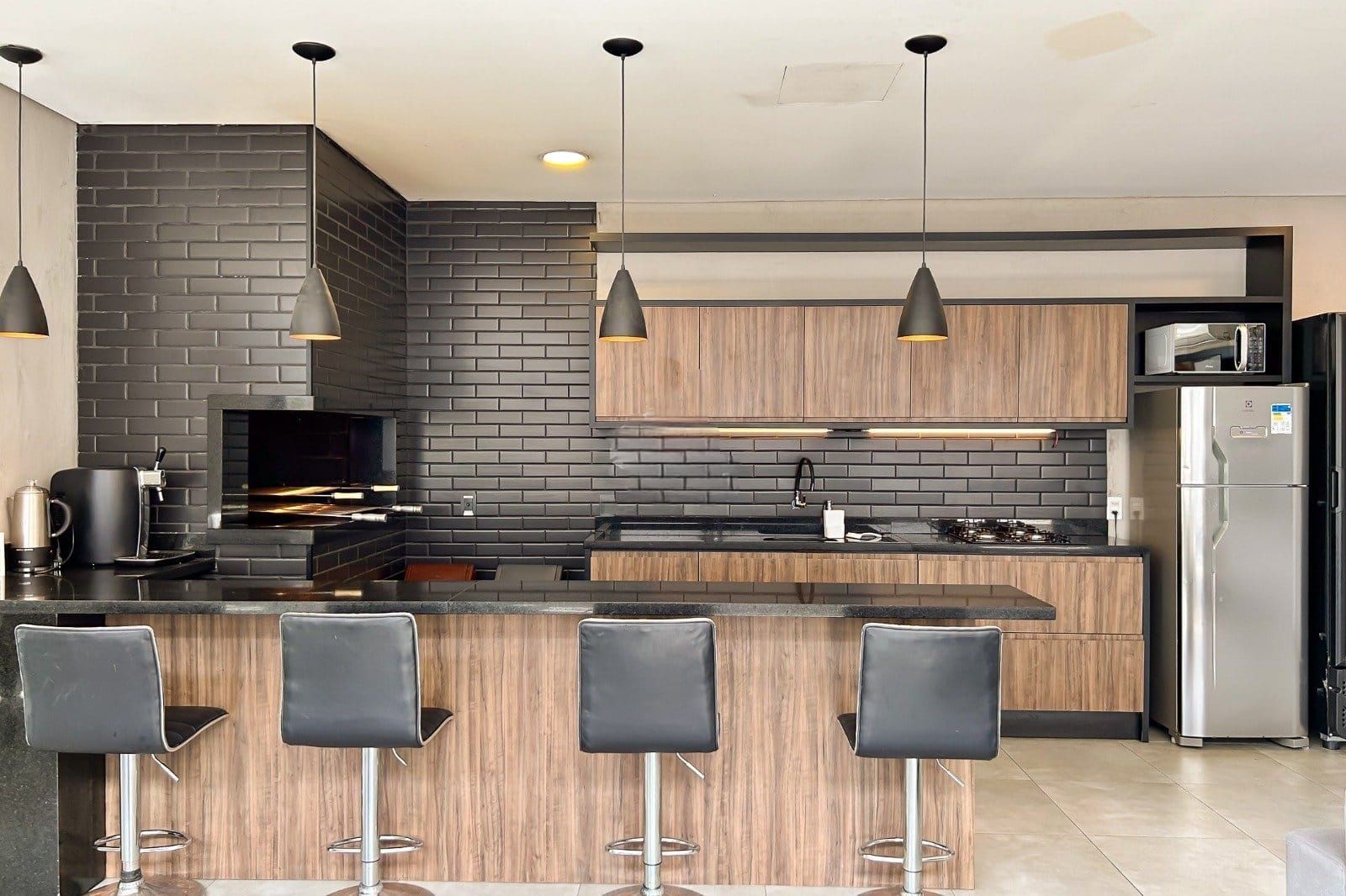 A cozinha americana é perfeita para momentos de confraternização, enquanto a área de serviço e o lavabo oferecem praticidade no dia a dia. Para os amantes de churrasco, uma churrasqueira está disponível, ideal para receber amigos e familiares. O imóvel ainda dispõe de 2 vagas de garagem, garantindo comodidade e segurança.