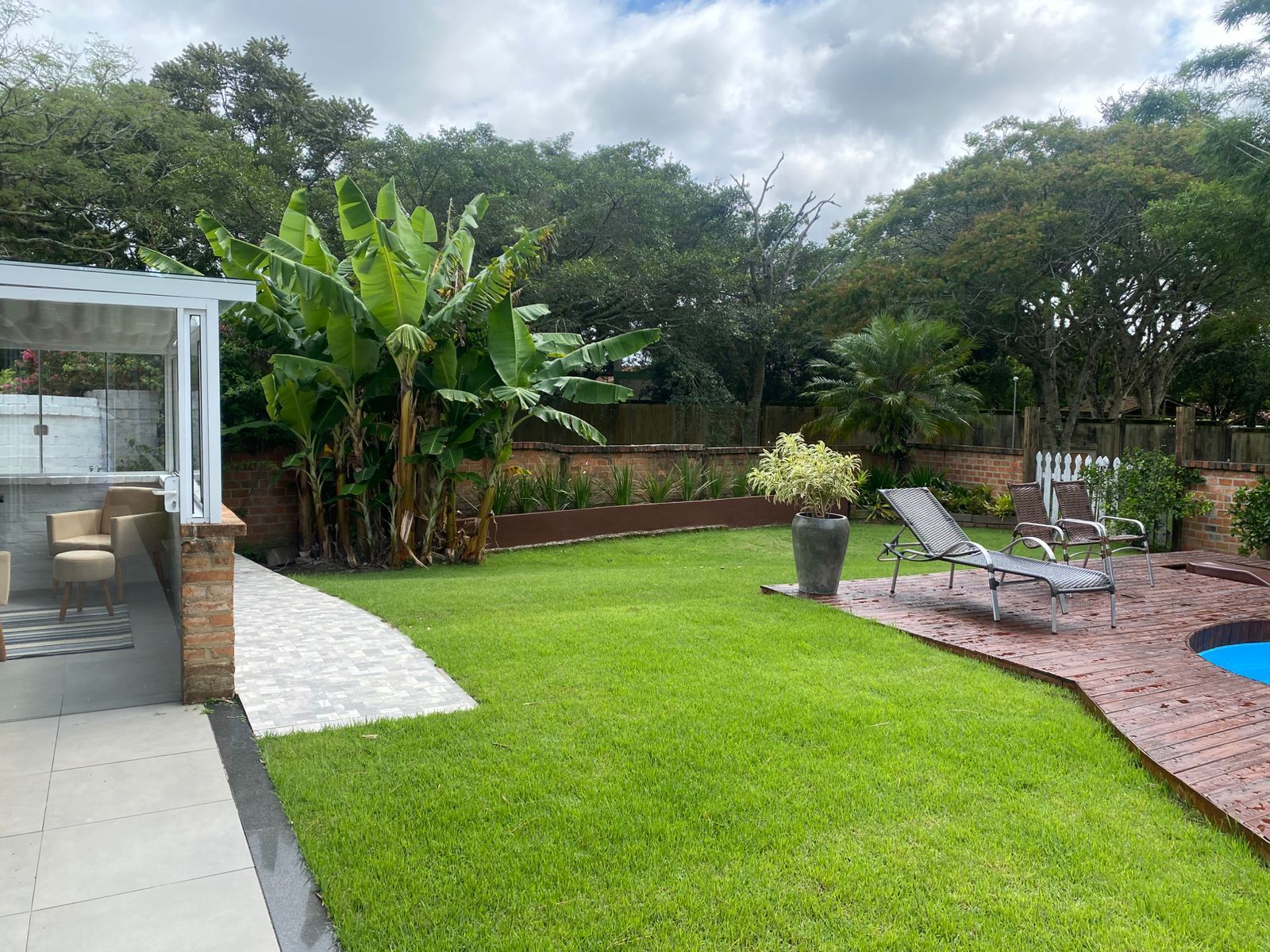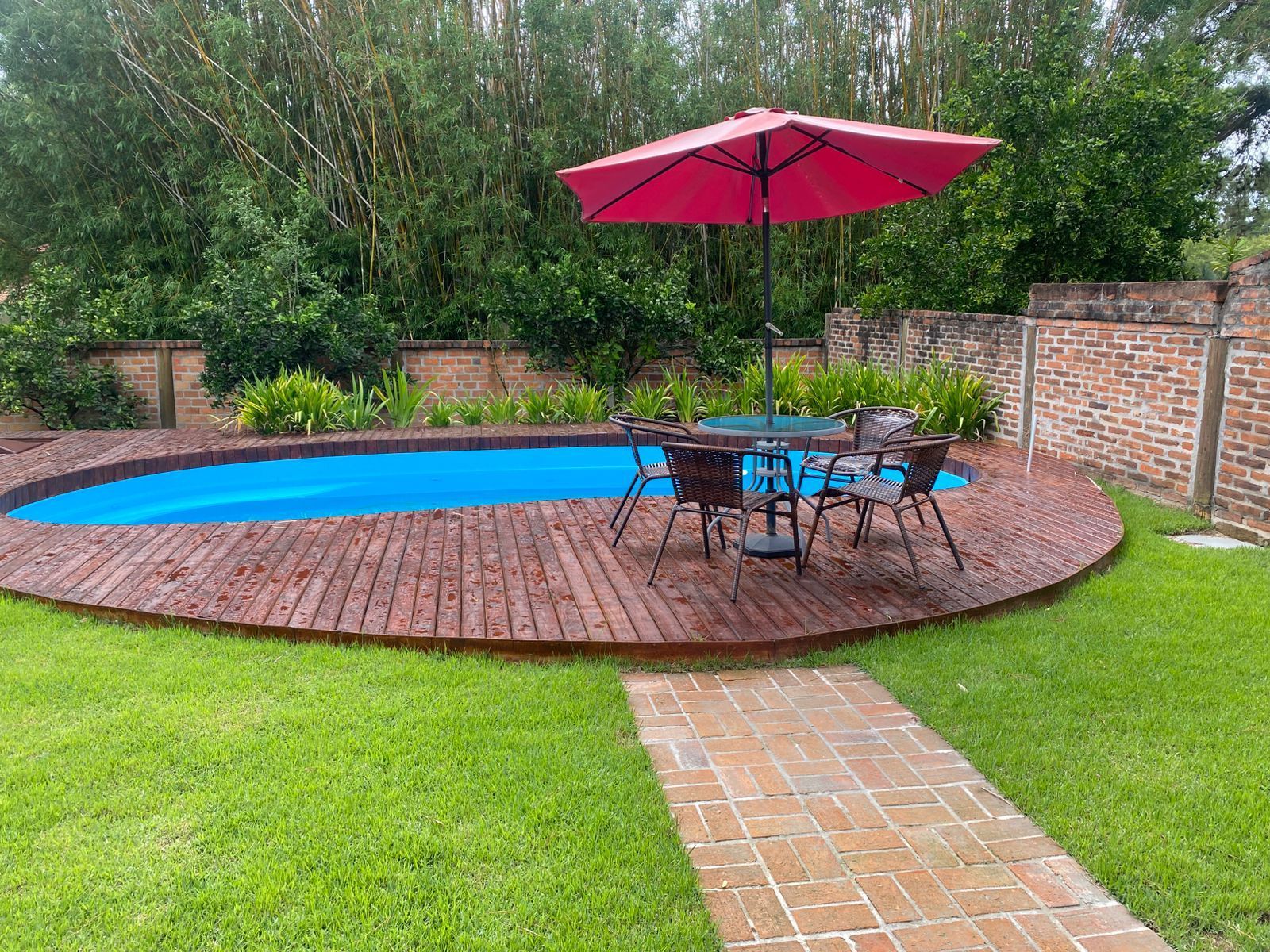 O jardim gramado com piscina faz divisa com uma área verde do condominio, onde não é permitido construir, aumentando ainda mais a privacidade.