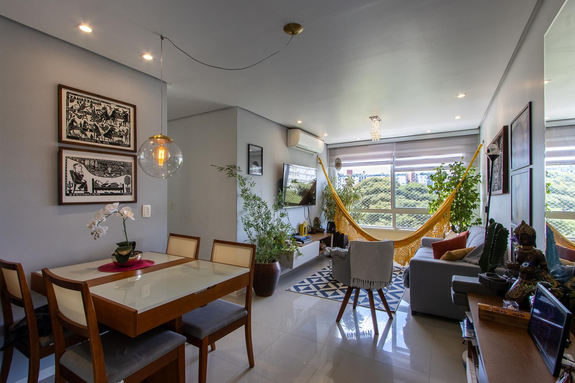 2 dormitórios, sendo 1 suíte, Living amplo para 2 ambientes, arejado e com luz natural (sol da manhã), Janelas amplas com vista arborizada e silenciosa