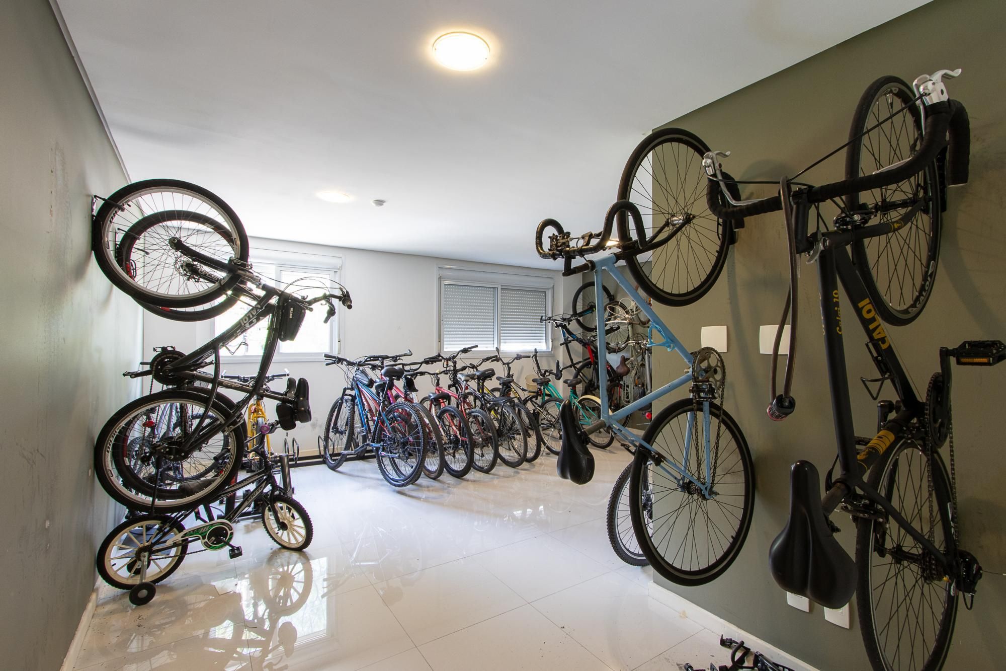 Água e gás individualizados, Piscina coletiva, Salão de festas climatizado com churrasqueira, Bicicletário, Portaria virtual