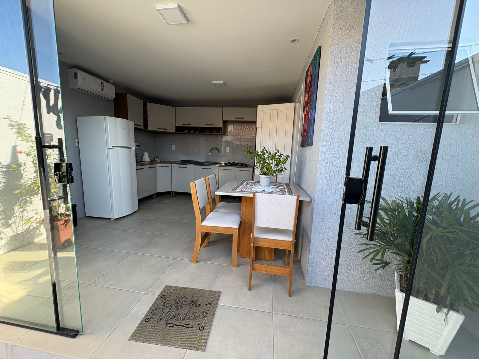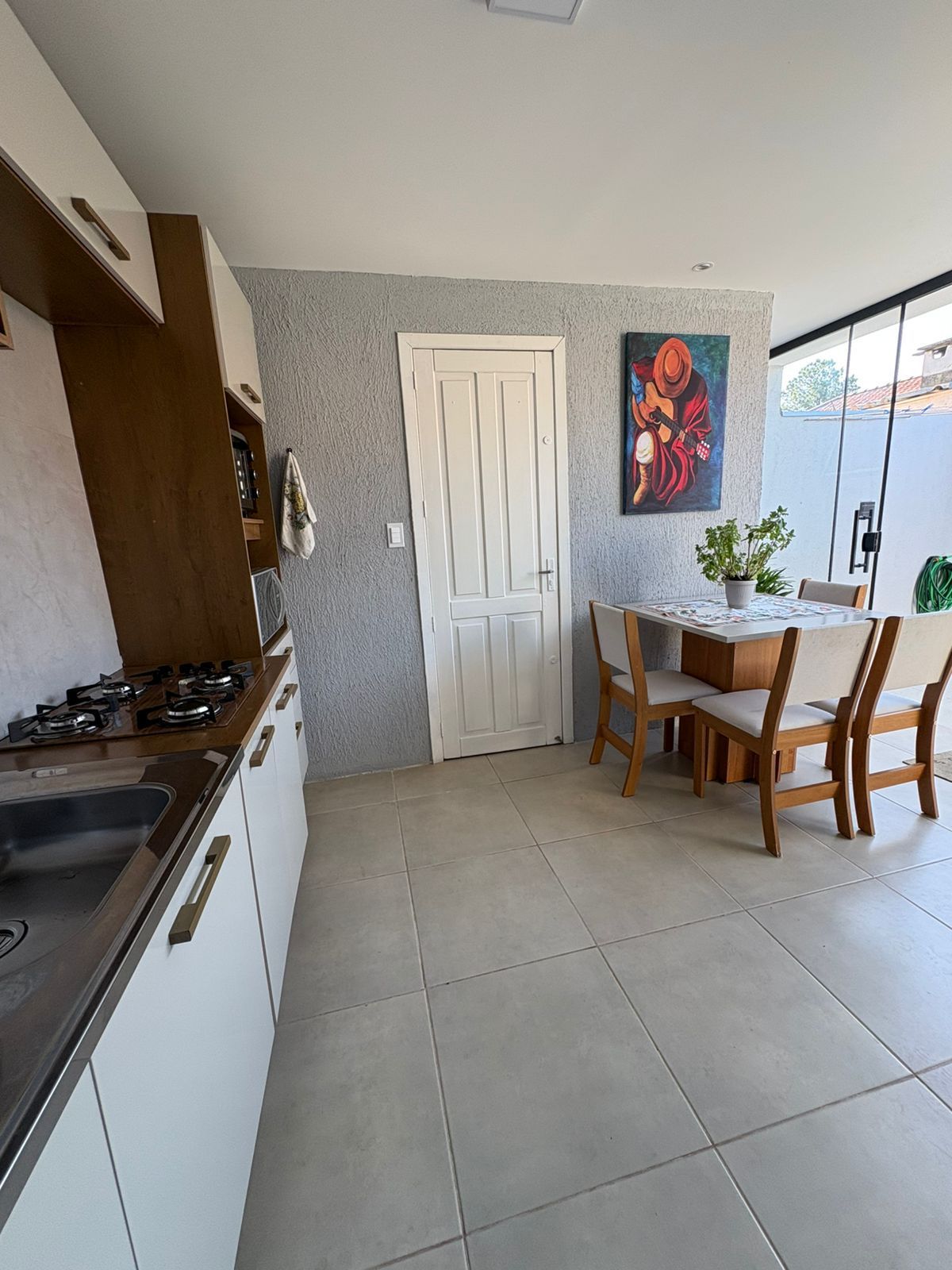 A área externa conta com um agradável pátio, perfeito para momentos de lazer e uma deliciosa churrasqueira para confraternizações com amigos e familiares.