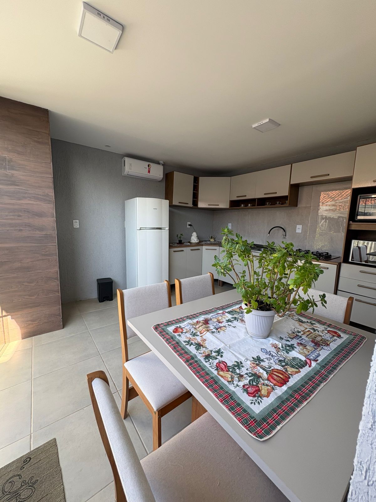 A casa também possui comodidades que fazem toda a diferença, como armários embutidos, energia solar, ar condicionado, acesso asfaltado, cozinha e lavanderia amplas, além de luminárias que proporcionam uma iluminação aconchegante.