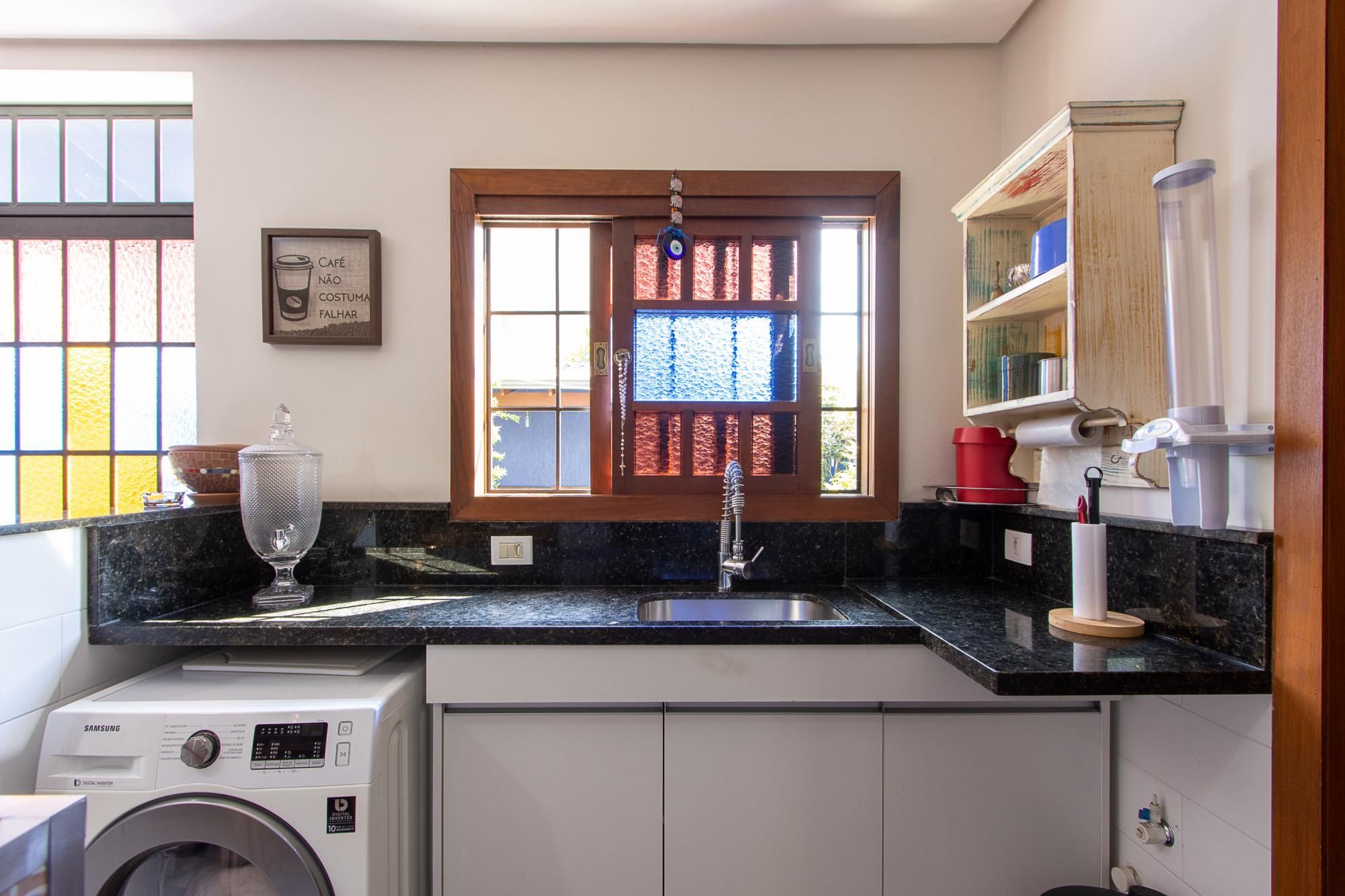 O imóvel conta com um living aconchegante com lareira 🔥, hall de entrada individualizado, lavabo e ambientes bem distribuídos que proporcionam excelente integração entre os espaços. A cozinha é mobiliada e funcional 🍽️, conectada à área de churrasco 🍖, além de lavanderia com marcenaria sob medida e acabamentos em pedra.