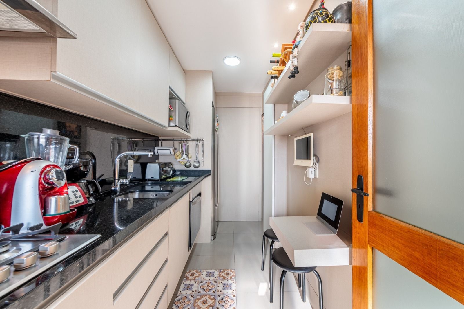 O apartamento posicionado de frente para a rua em andar alto oferece luminosidade e natural e ventilação agradável em todos os ambientes, os móveis planejados valorizam o conforto e a beleza desse imóvel, a cozinha equipada, separada da área de serviço confere mais espaço e funcionalidade no dia dia.