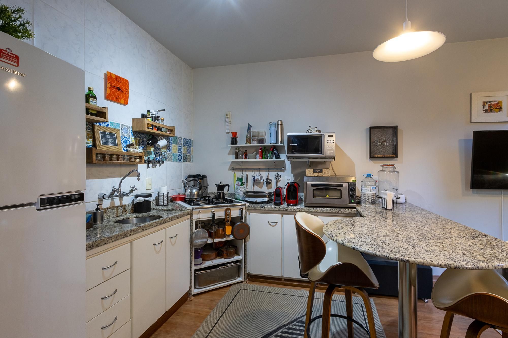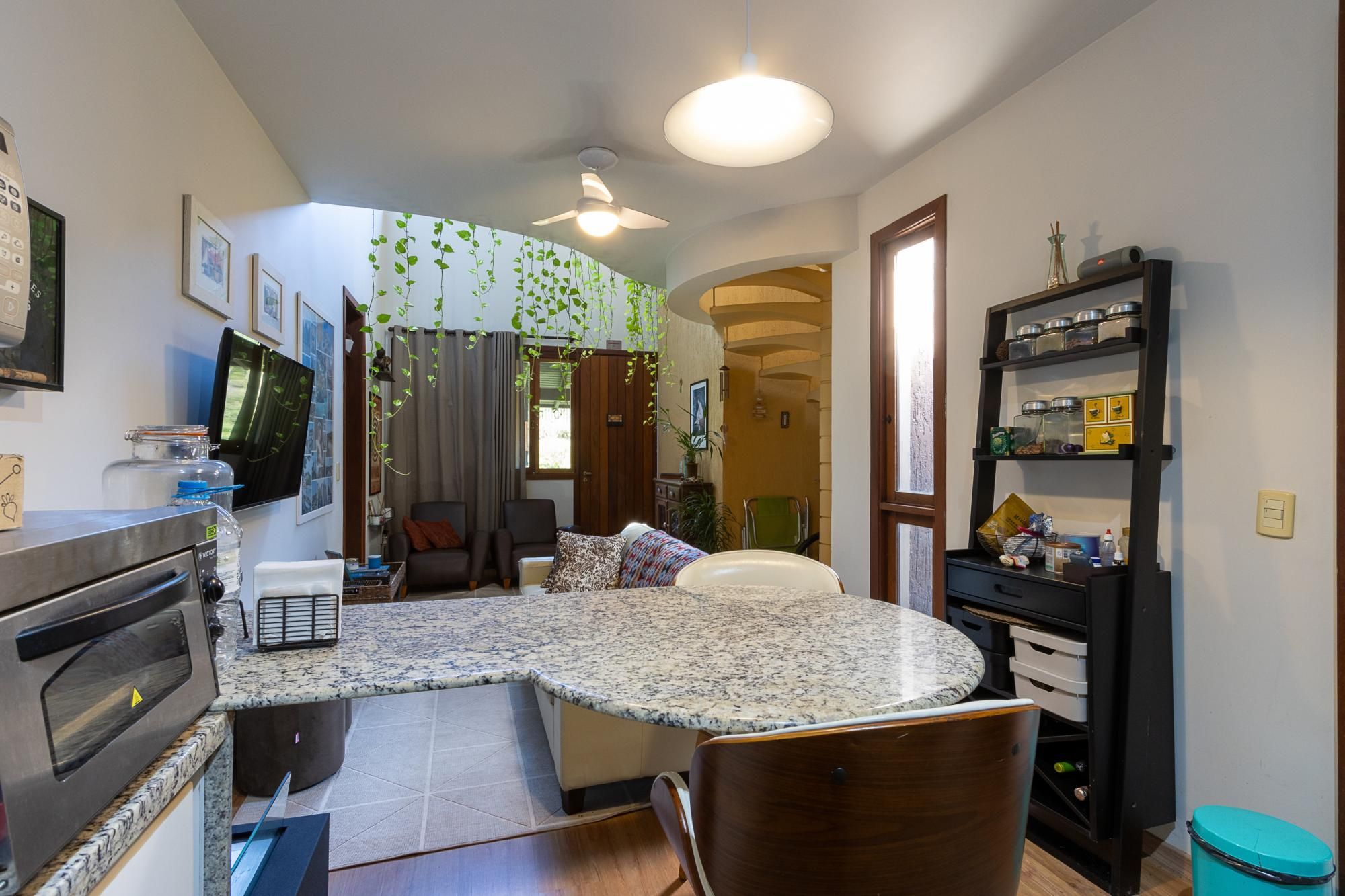 Para momentos de lazer, o imóvel dispõe de um charmoso espaço gourmet com churrasqueira, integrado aos demais ambientes, ideal para confraternizações.
