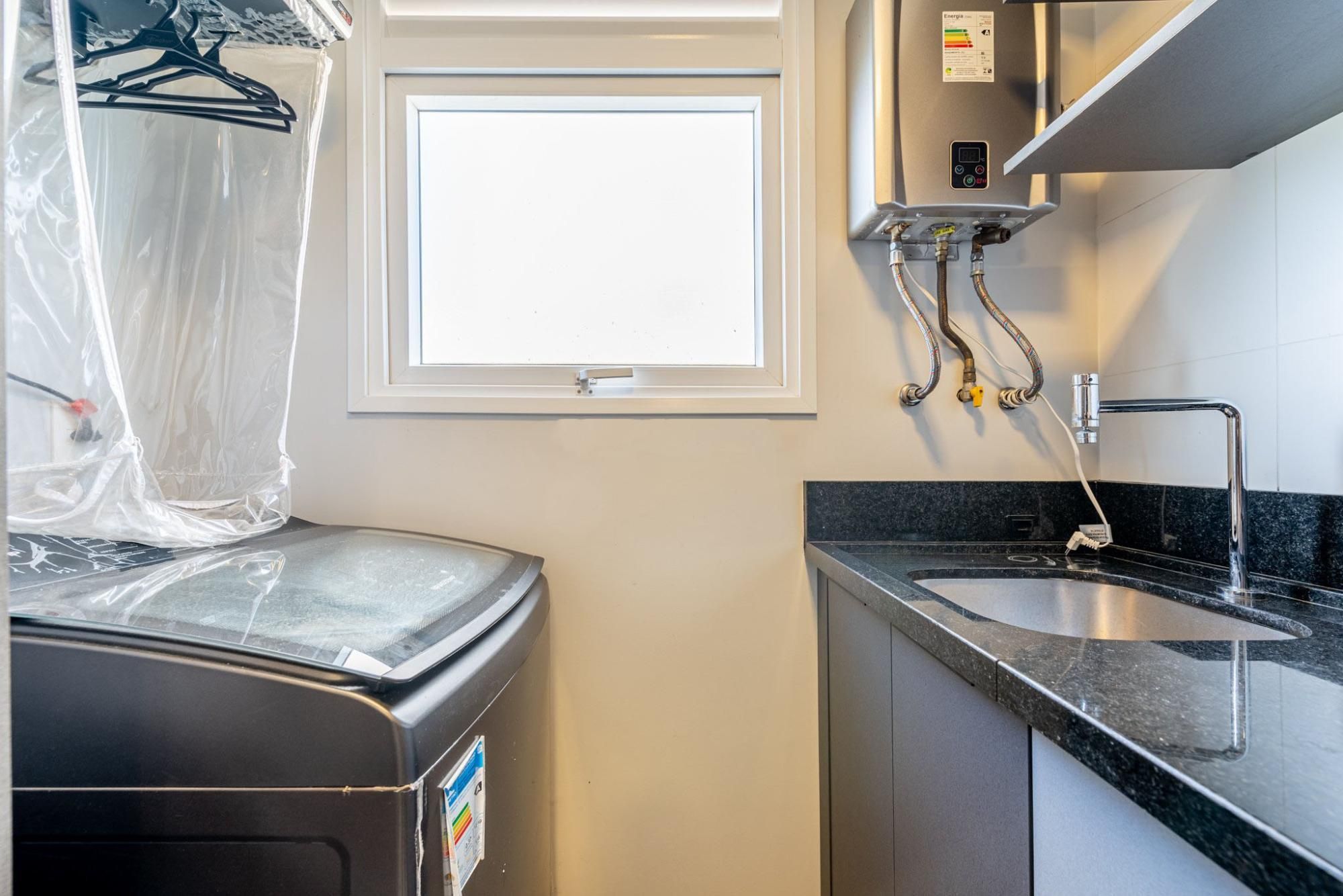 Com planta bem distribuída, o imóvel oferece suíte confortável, lavabo, living para dois ambientes com excelente iluminação natural, cozinha integrada com churrasqueira e área de serviço funcional. Os acabamentos e a mobília agregam praticidade e sofisticação ao dia a dia. Conta ainda com 2 vagas de garagem, um diferencial importante na região.