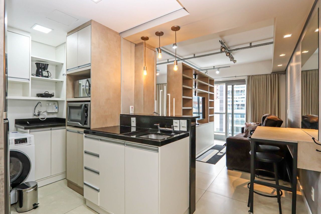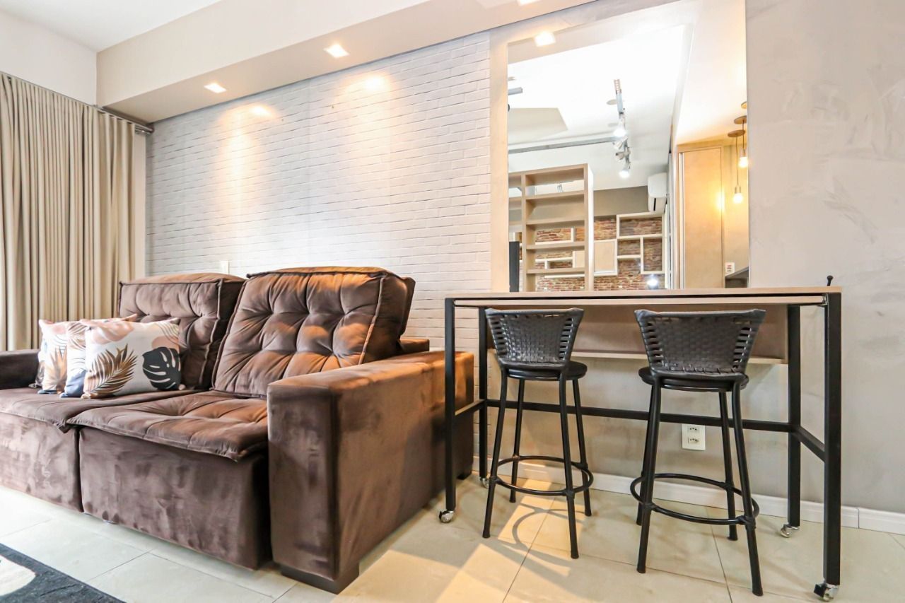 Apartamento estilo loft com 39 m², mobiliado e equipado. Conta com living integrado, cozinha planejada com churrasqueira, área de serviço, sacada integrada com esquadrias de alto desempenho acústico, gesso rebaixado, projeto de iluminação, split e eletrodomésticos. Possui 1 vaga de garagem coberta.