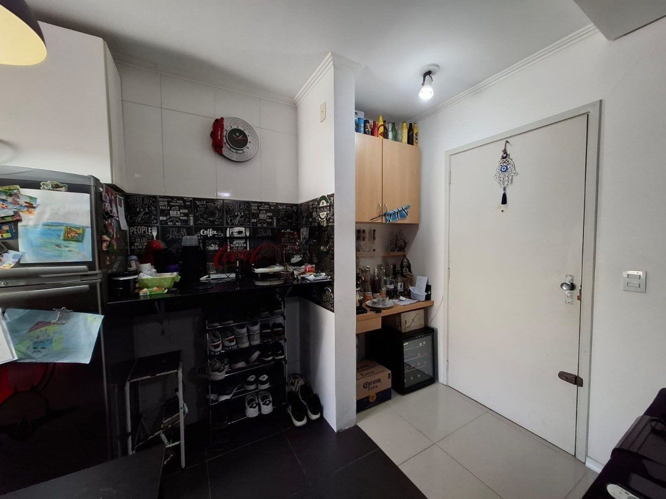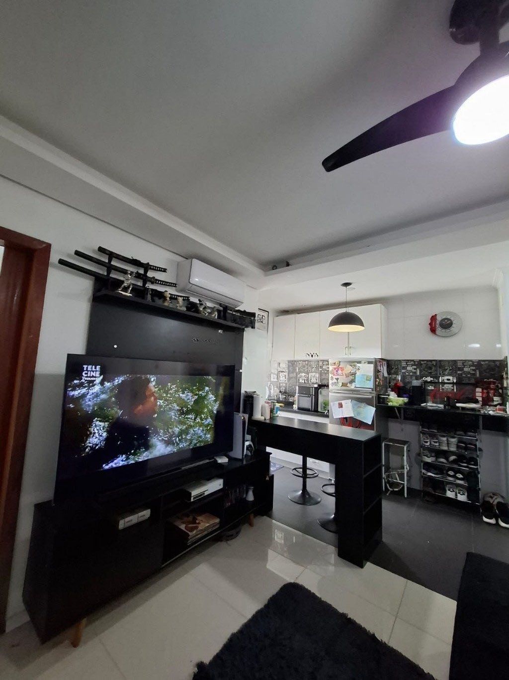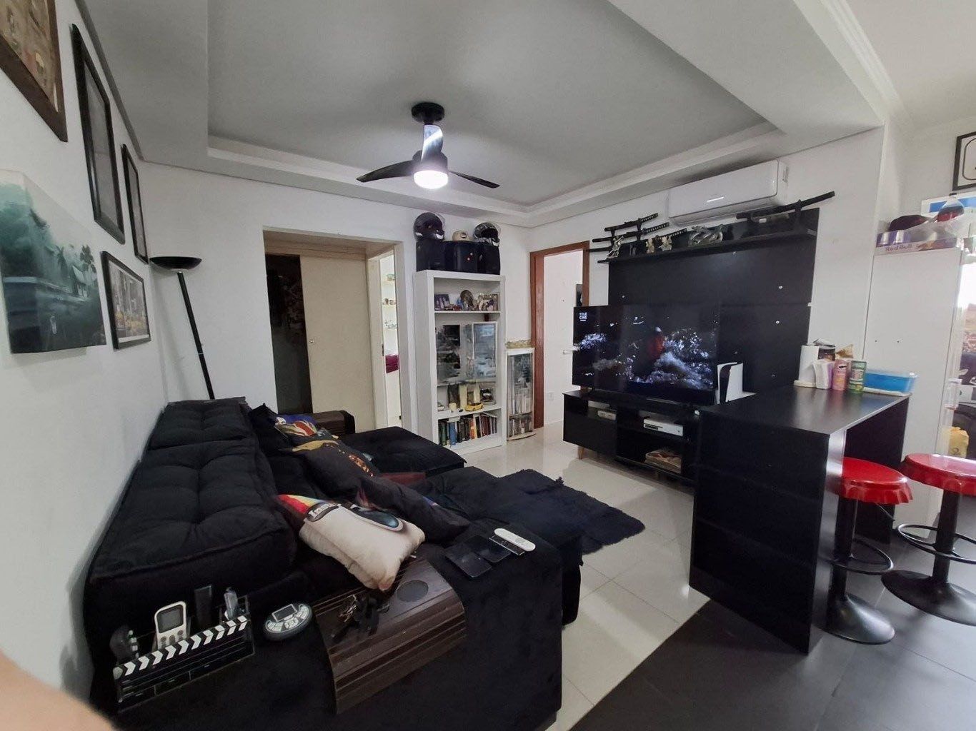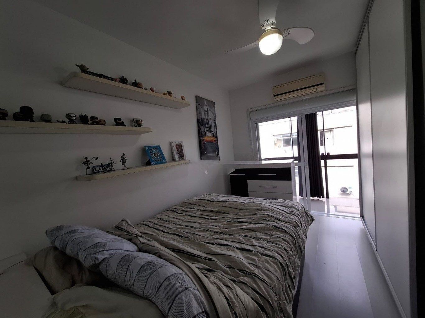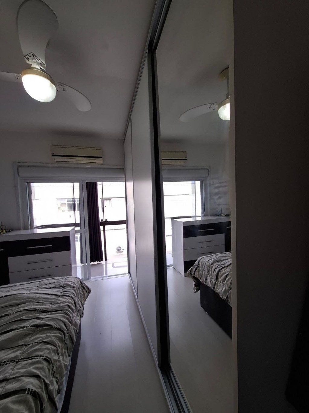 Apartamento semi mobiliado, cozinha com armários e geladeira, 3 armários auxiliares , mesa dividindo cozinha americana, 3 splits instalados, 3 ventiladores de teto, quarto solteiro armário roupeiro, cômoda, parteira e baú no quarto no casal, banheiro com armário e box de vidro.