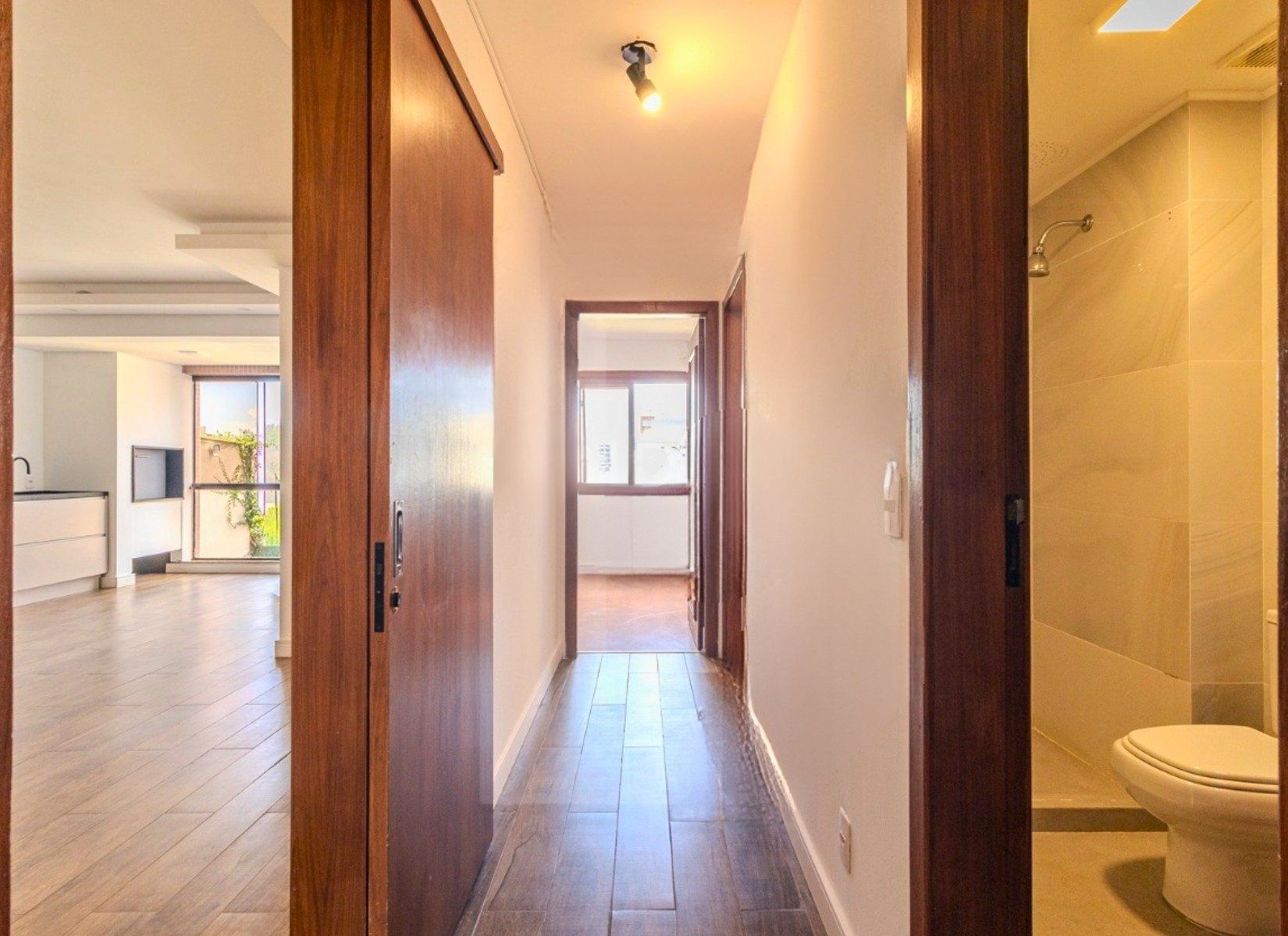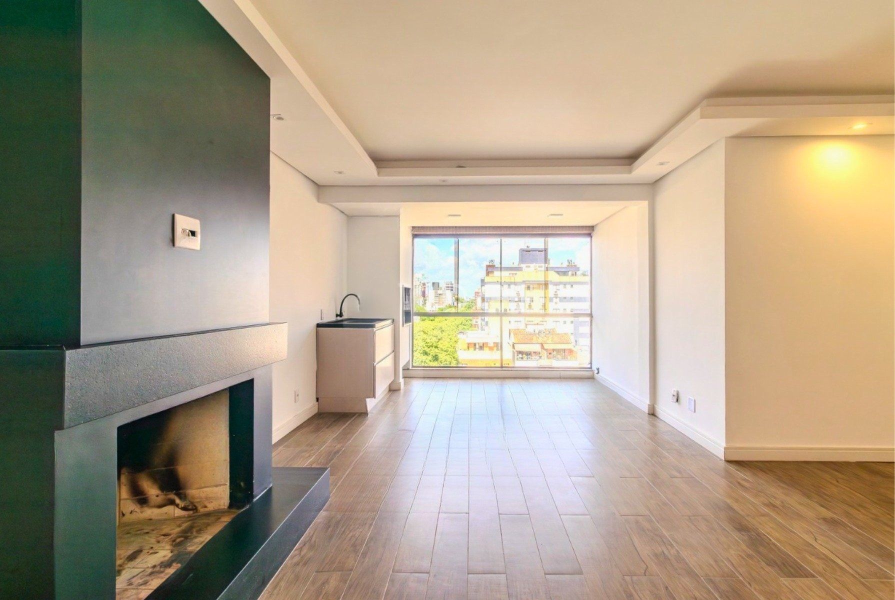 Apartamento de 114 m² em localização privilegiada, próximo à Praça da Encol e ao Grêmio Náutico União. Possui living amplo com lareira, sacada fechada com churrasqueira, 3 dormitórios (1 suíte com closet), cozinha funcional, área de serviço separada e 1 vaga coberta.