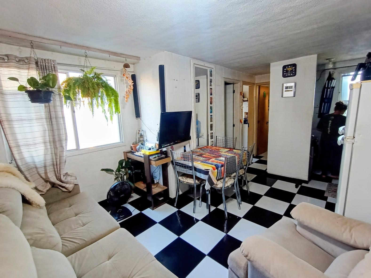 Apartamento com 38,4 m² de área privativa, composto por 2 quartos privativos, com janelas grandes, sala de estar com ventilação natural, cozinha com móveis planejados e área de serviço e 1 banheiro social com box de vidro e ventilação natural.