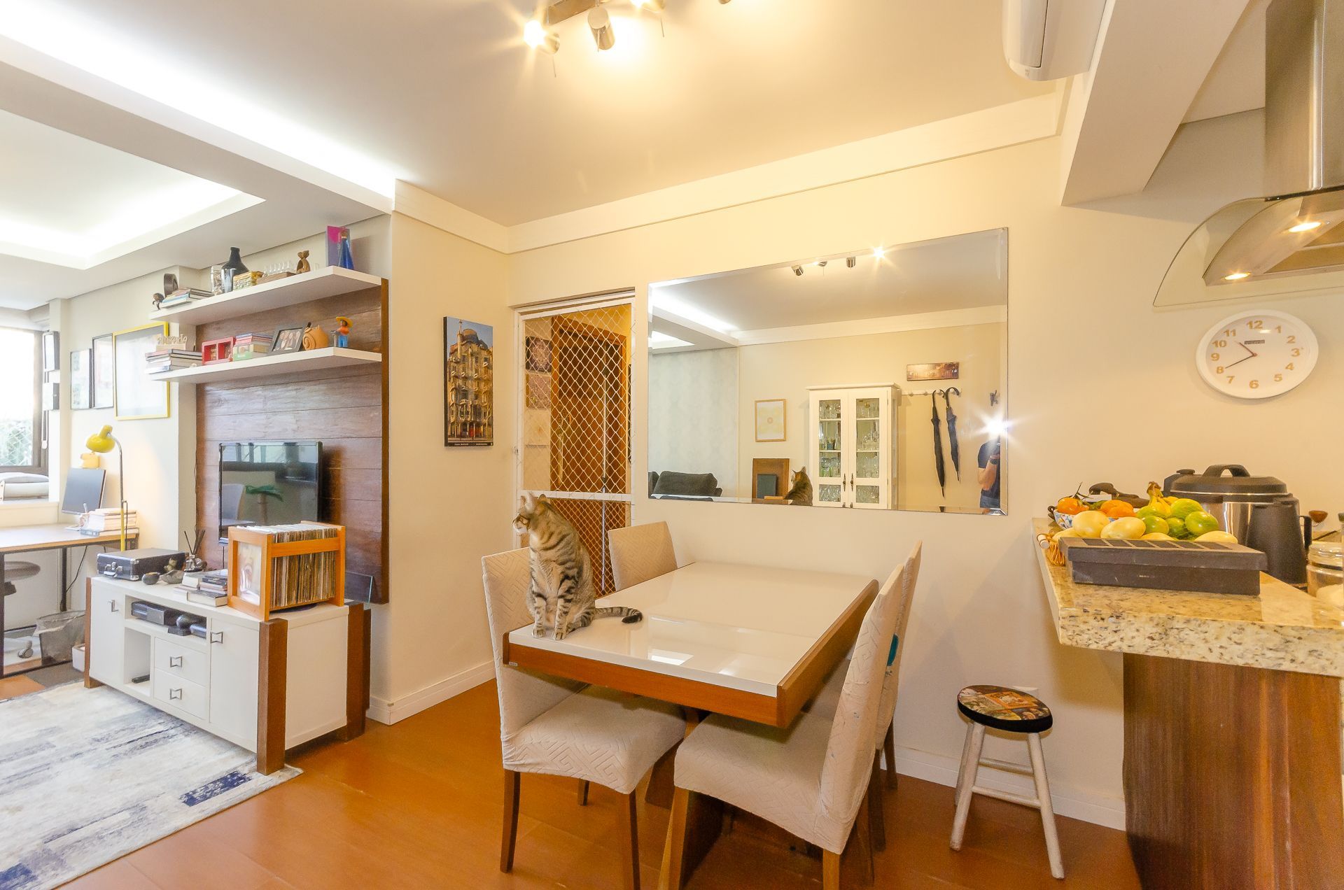 Este apartamento de 3 dormitórios com suíte vai surpreender pelo conforto e pelos detalhes. Iluminado, com sol da manhã e vista para a rua, oferece ambientes planejados para viver bem: suíte com móveis sob medida, escritório pronto para home office, cozinha equipada com móveis planejados, cooktop e exaustor, além de uma sala acolhedora com painel de TV e ar-condicionado em todos os cômodos. A churrasqueira com acabamento em inox e vidros duplos em todos os ambientes garantem praticidade e qualidade.