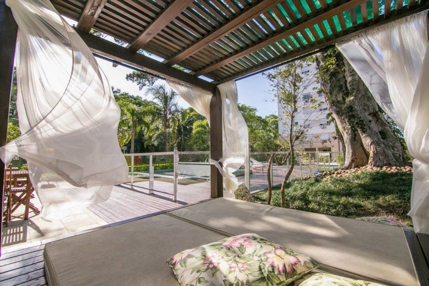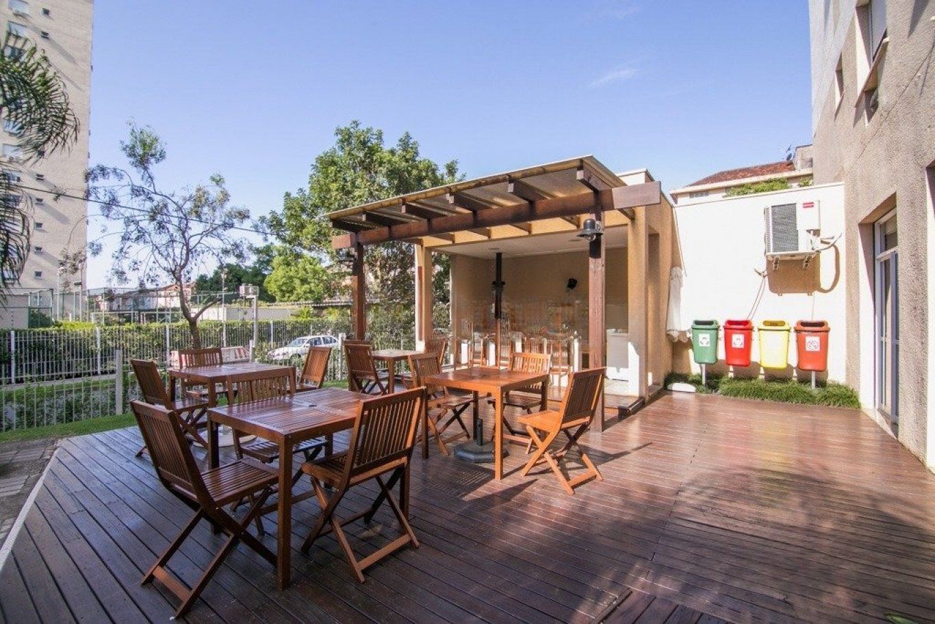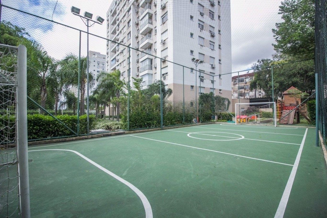 Condomínio com infraestrutura completa: possui piscinas coletivas para adultos e crianças, academia completa (fitness), quadra poliesportiva, quiosque com churrasqueira, SPA com sauna úmida, salão de festas gourmet, espaço gourmet na área comum, sala de jogos e um "chimarródromo", brinquedoteca, playground, ateliê infantil e um "espaço kids", Mini mercado interno, , gás central, gerador de energia e dois elevadores por torre, portaria 24 horas (com opções de portaria virtual/física dependendo da gestão), circuito fechado de TV, gradil e interfone.