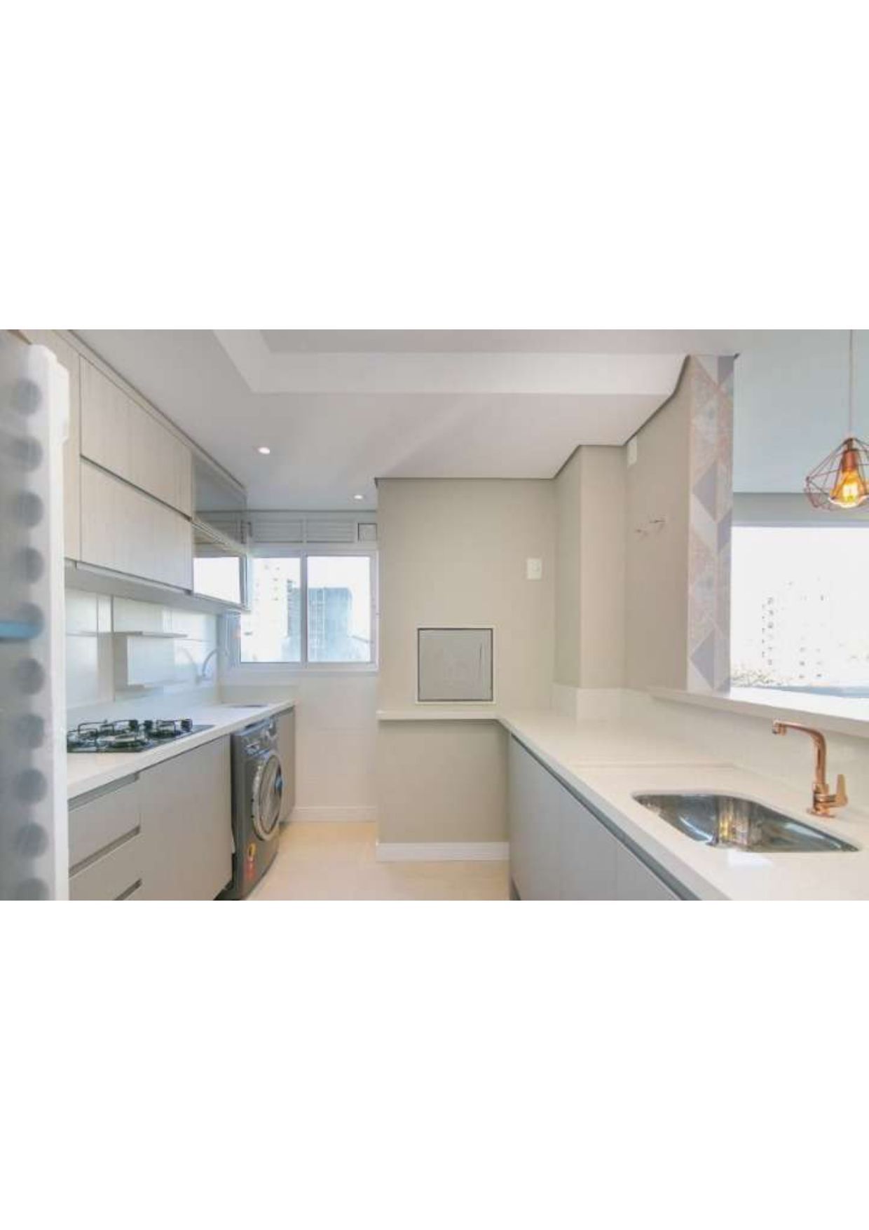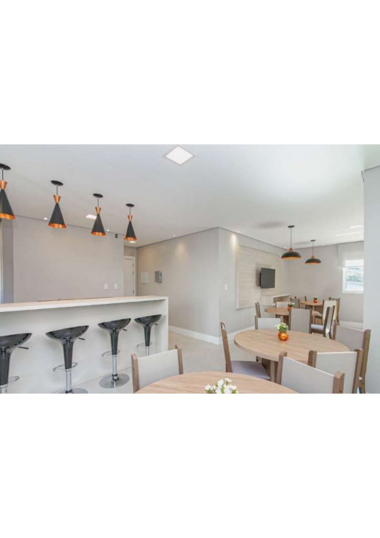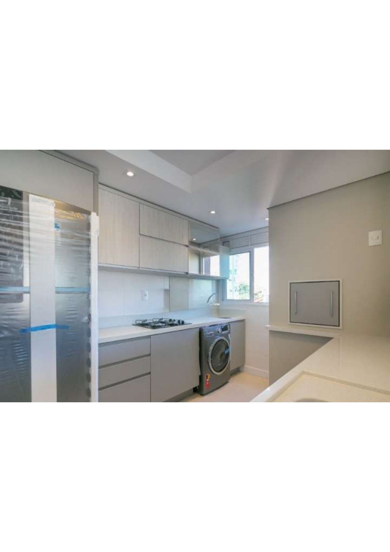 2 Dormitórios ( 1 suite ), banho social, living 2 ambientes em piso laminado, cozinha americana com espaço churrasco e área de serviço.