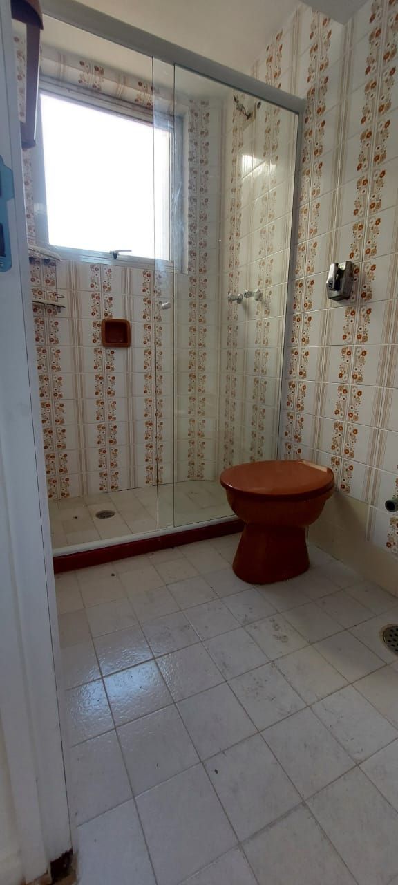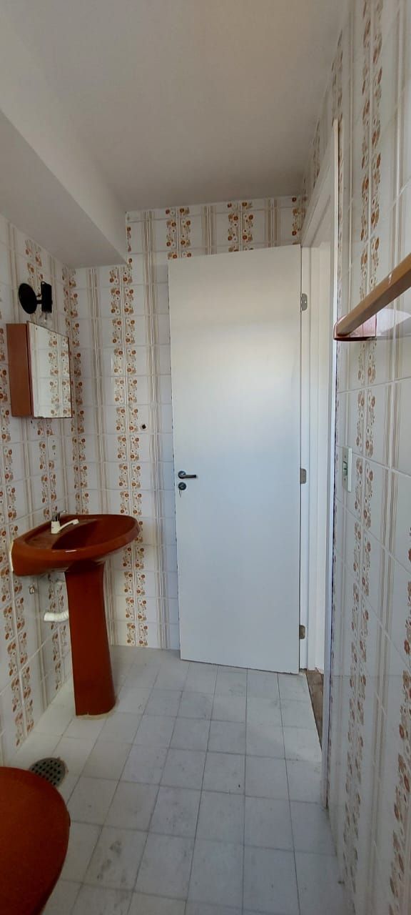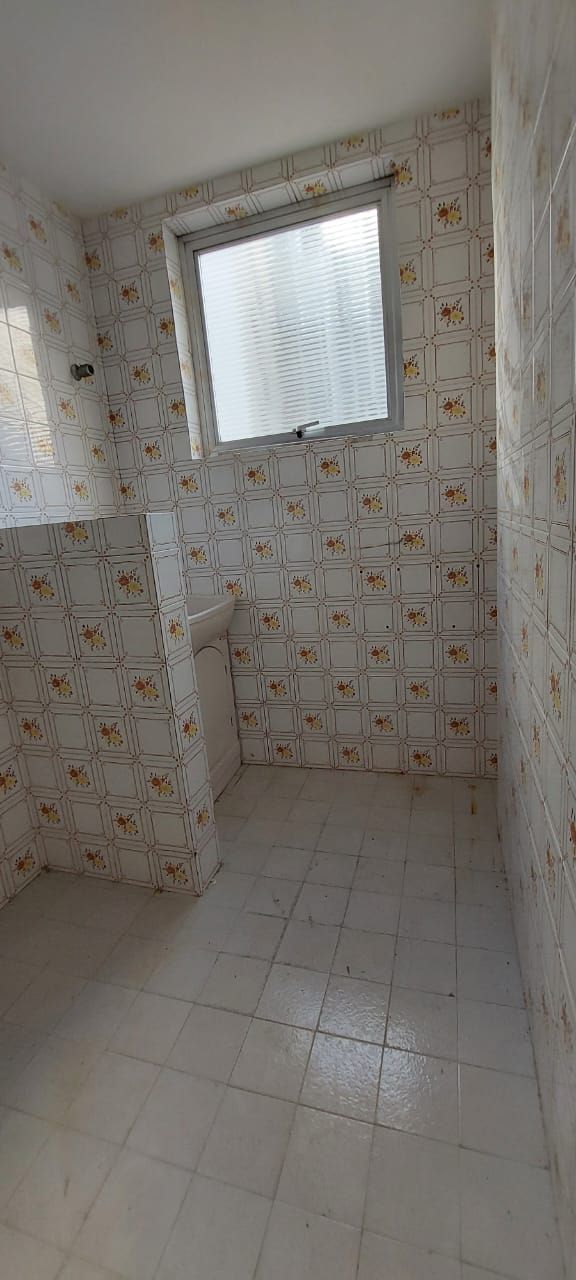 Apartamento JK, banheiro com ventilação natural, cozinha e área de serviço, imóvel arejado e ventilado. Prédio com porteiro eletrônico e elevador.
