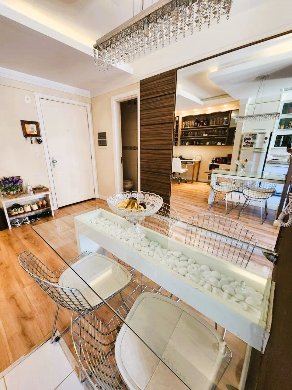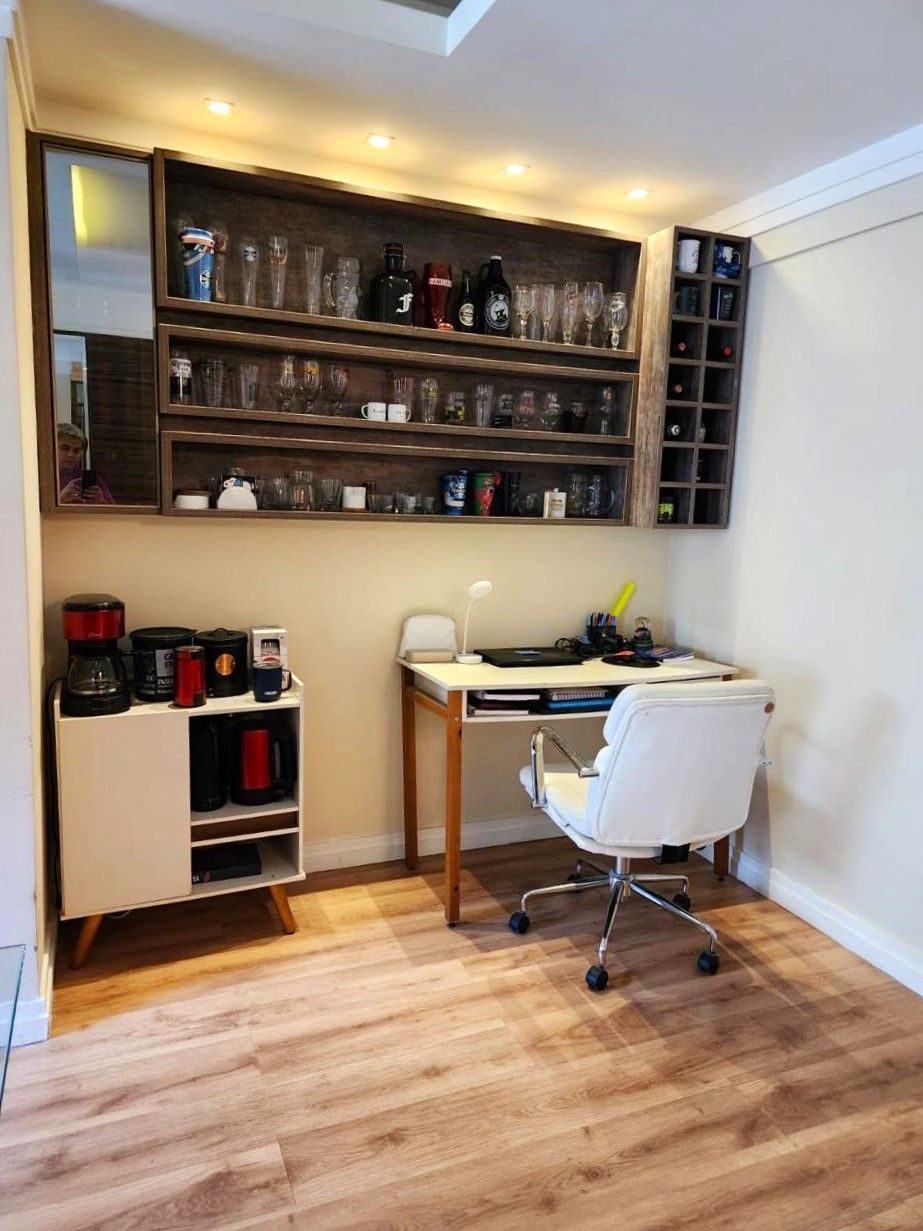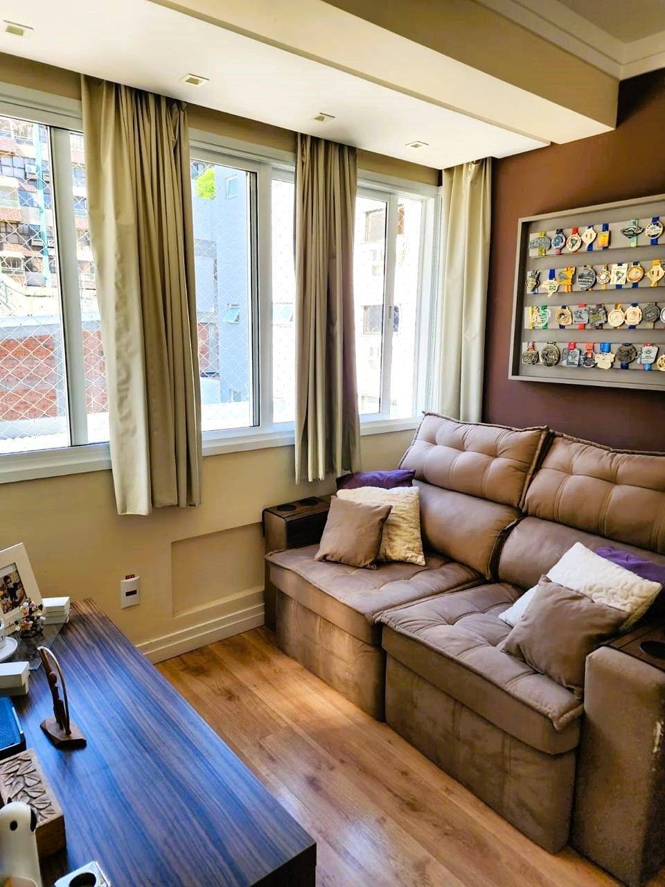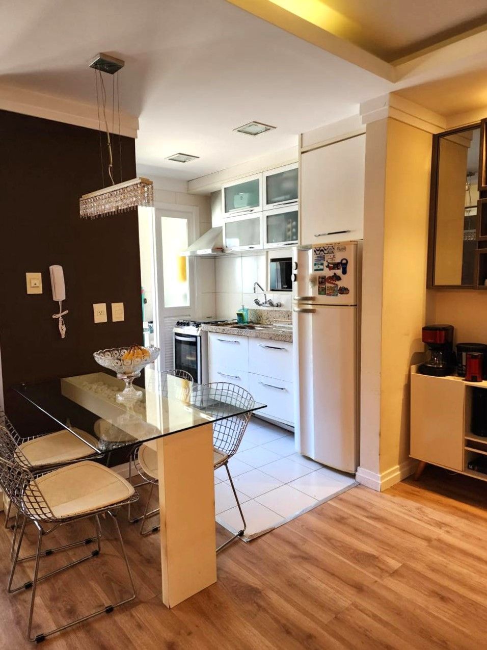 Apartamento semimobiliado, com 1 dormitório (suíte), lavabo, living integrado à cozinha com churrasqueira e uma linda vista. Conta ainda com 1 vaga de garagem coberta e escriturada e posição solar leste, garantindo ótima luminosidade.