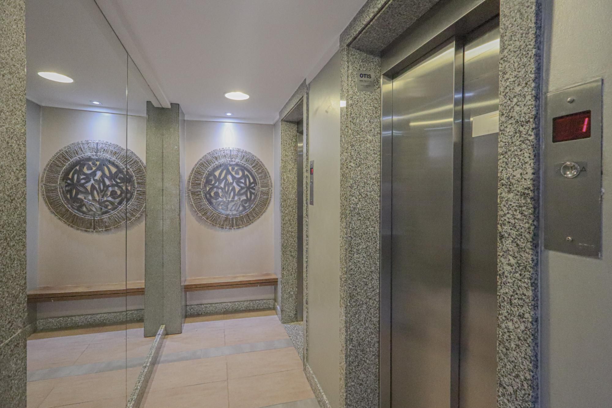 O condomínio oferece elevador social, elevador de serviço, portaria 24 horas.