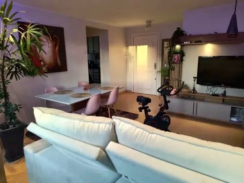 Apartamento de 2D sendo 1 suíte (ambos com ar condicionado), 2 banheiros com chuveiro elétrico e Box de vidro, cozinha sob medida e pia de granito, área de serviço separada, sala com sanca de gesso, sacada de 4,30m com vidro duplo escuro e parede ripada, vaga escriturada e coberta (cabem 2 carros grandes), 2 lances de escada, todas as janelas com vista, imóvel reformado em agosto de 2022.