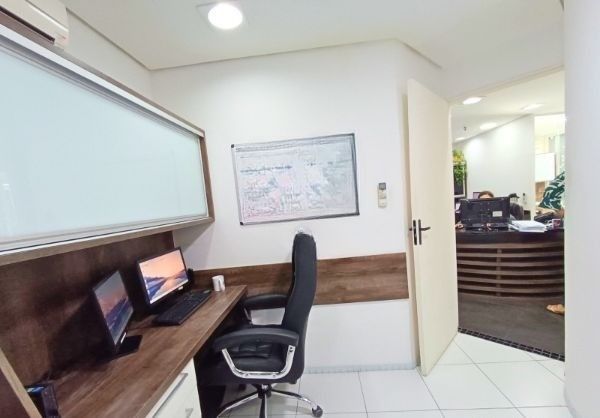 Ótimo conjunto comercial no Edifício SAOEX Center, no bairro Higienópolis, térreo, com 113m² privativos, mobiliado. Podendo também ser usado como loja, showroom, clínica. (Podendo ser unificado com o conjunto ao lado totalizando 216m² privativos.) Possui 2 vagas de garagem independentes. Possui recepção, sala de reuniões, 2 banheiros, copa, salão com 20 estações de trabalho e outras salas individuais. Completamente mobiliado, equipado e Splits instalados. Pintura recente. Sistema de câmeras e alarme. Condomínio com portaria 24h, estacionamento para visitantes e 2 elevadores panorâmicos. Localizado em ótima região, com amplo fluxo de veículos, próximo da Av. Cristóvão Colombo, com todos os recursos próximos. Agende já uma visita.