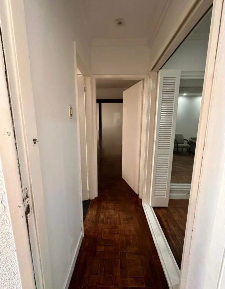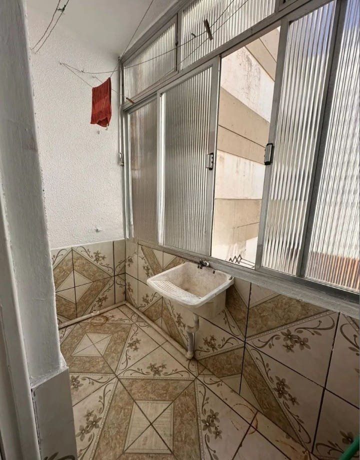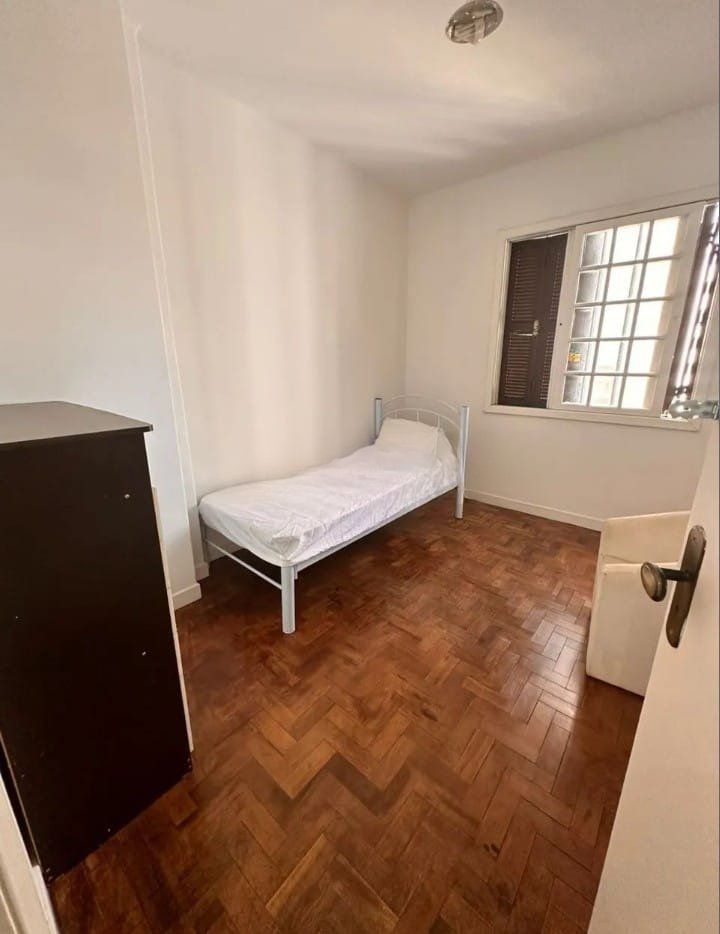 Apartamento com 4 quartos, 2 banheiros, sala, cozinha, área de serviço e elevador. Sala ampla, iluminada e arejada em dois ambientes, com sala de jantar em piso parquet e janelas grandes. Cozinha arejada, com boa luz solar, armários sob medida e mesa de jantar em piso cerâmico.
