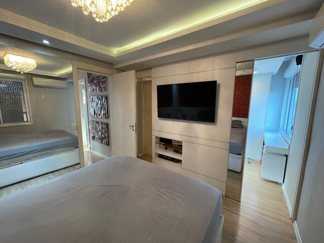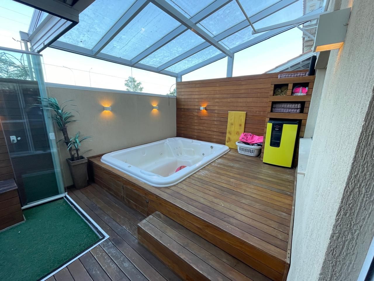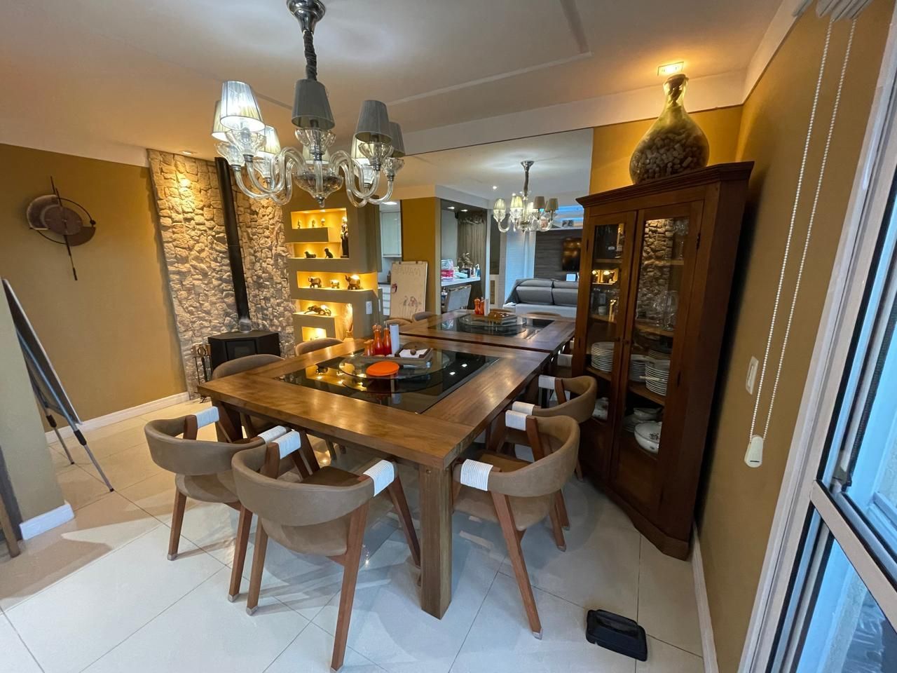 Com 3 quartos, 4 banheiros e 2 suítes, esta residência é perfeita para quem busca espaço e comodidade. Além disso, conta com 2 vagas de garagem, lareira, área de serviço, closet, lavabo, cozinha equipada, armários embutidos, interfone, churrasqueira, ar condicionado, sala de estar e jantar, espaço gourmet, jacuzzi, gás central e deck, proporcionando uma experiência de alto padrão para seus moradores.