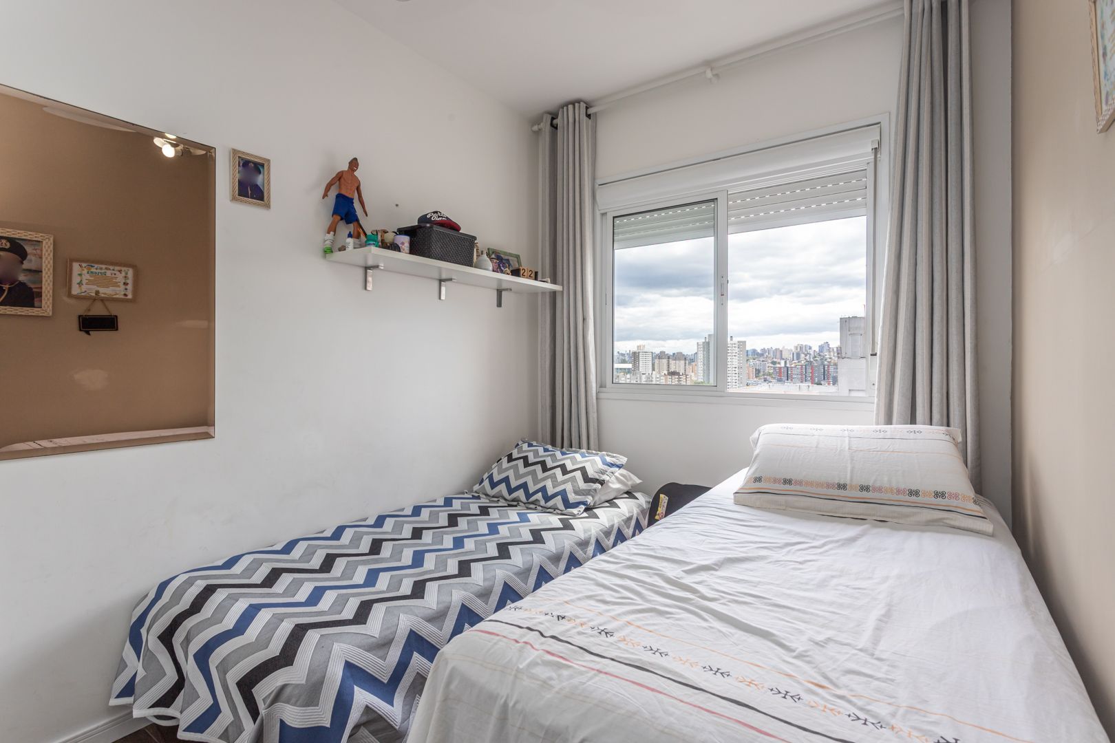 Apartamento 2 dormitórios no 9º andar com vista panorâmica, semi novo, living para 2 ambientes, banheiro social, cozinha, área de serviço e uma vaga de garagem coberta.
