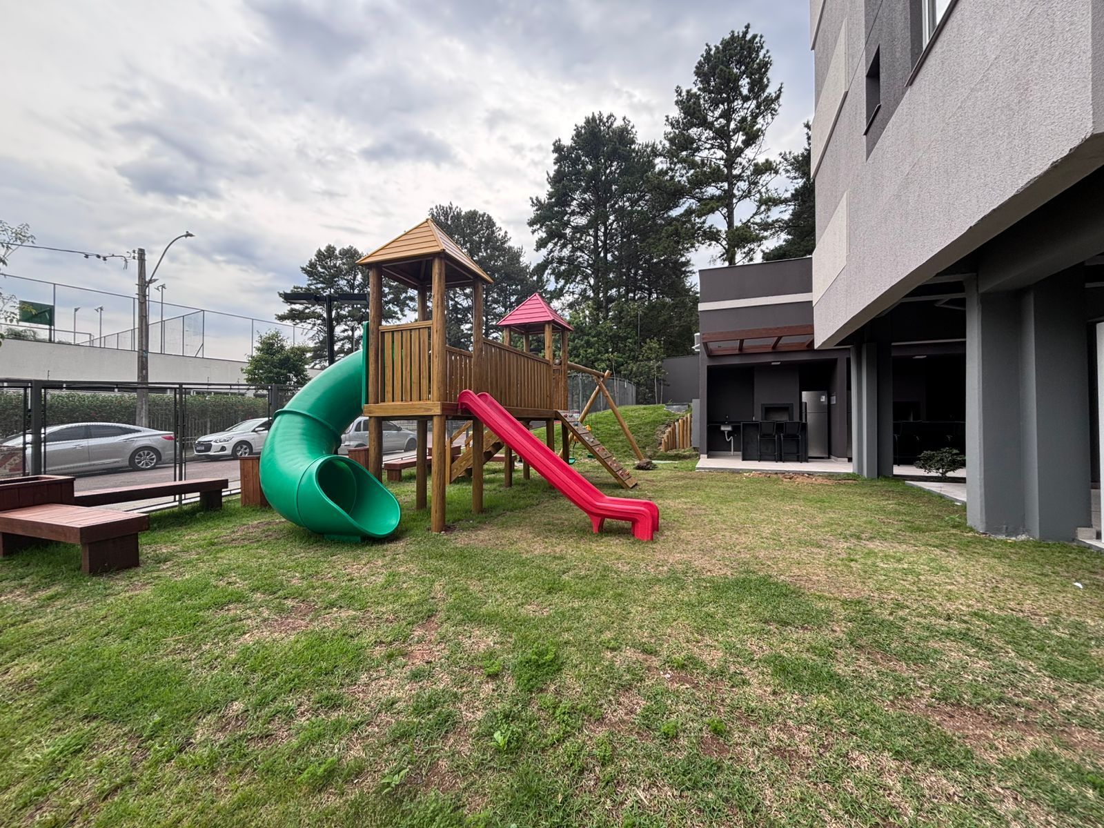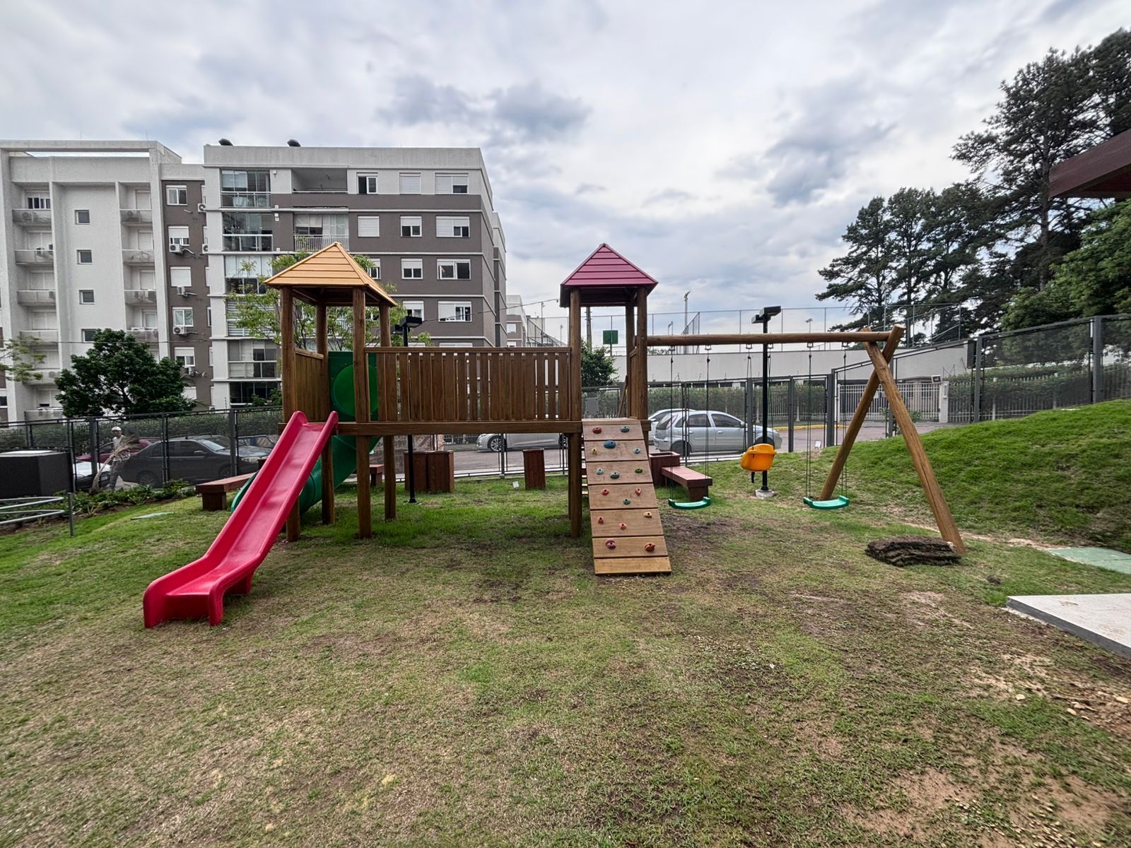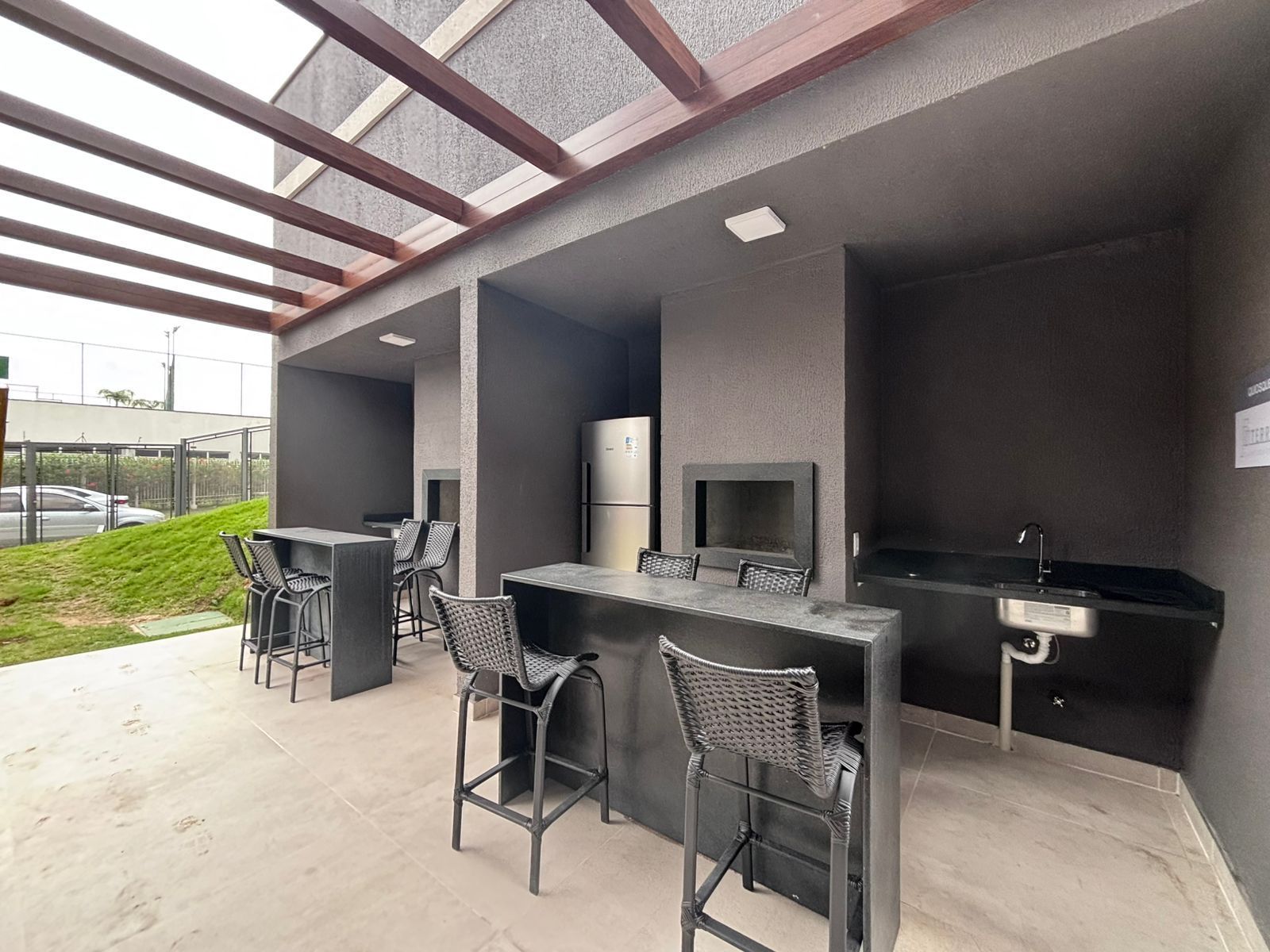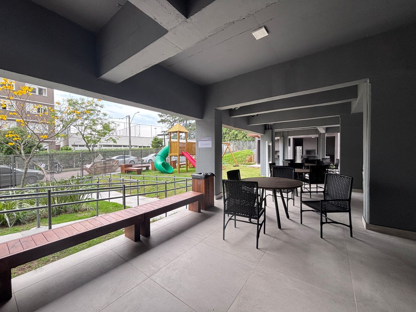 Condomínio Terrace Club Residencial com portaria 24 horas, playground, brinquedoteca, piscina adulto e infantil, quadra de beach tennis, academia, quiosque com churrasqueira, pet shop, bicicletário e um roof top no último andar com vista 360º da cidade toda.