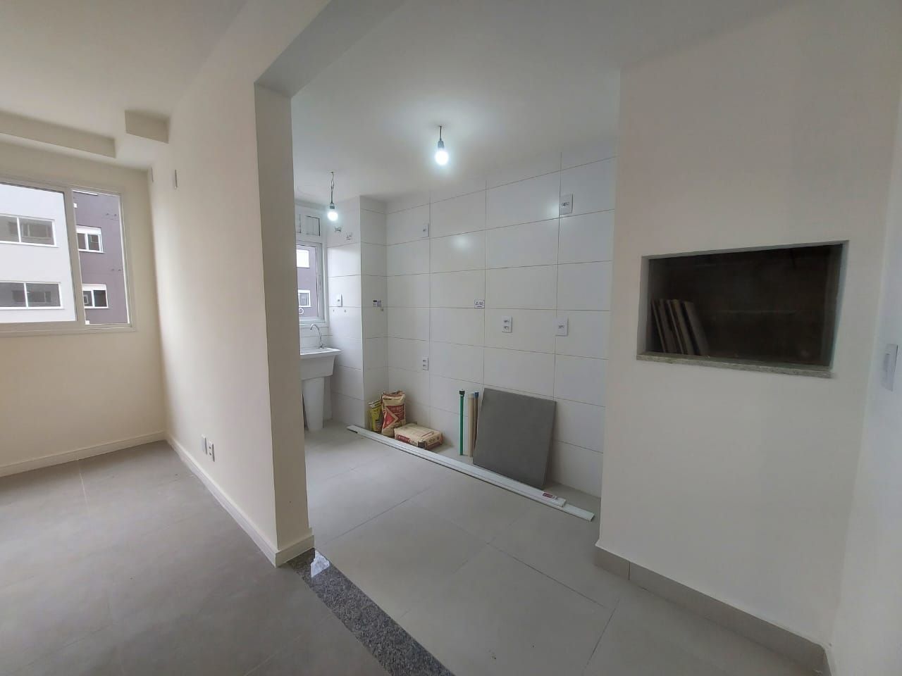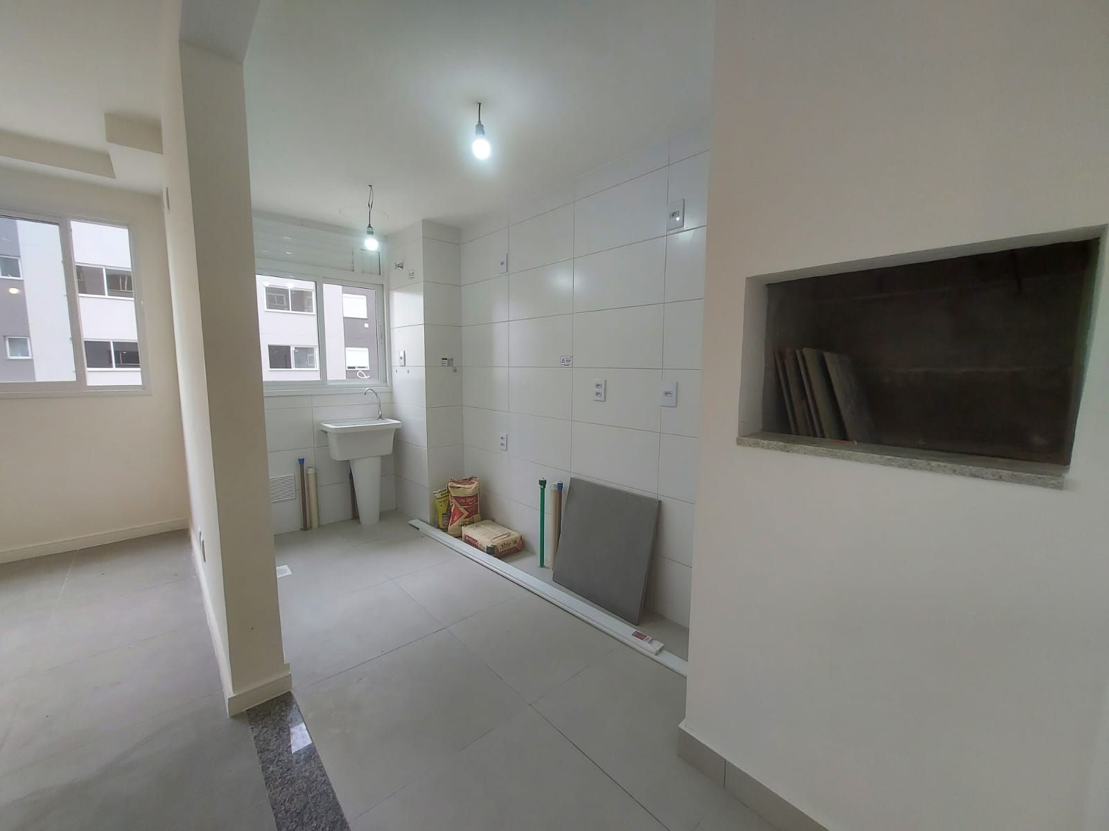 Apartamento de 58 metros privativos no bairro Jardim Sabará. Sala ampla dois ambientes com janelas grandes. Cozinha americana com churrasqueira e área de serviço. 2 quartos com privacidade e 1 suíte. Banheiro social. Sol da tarde e 1 vaga de garagem.