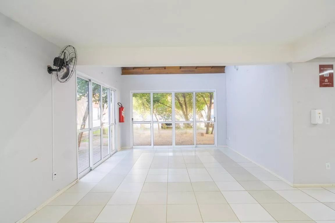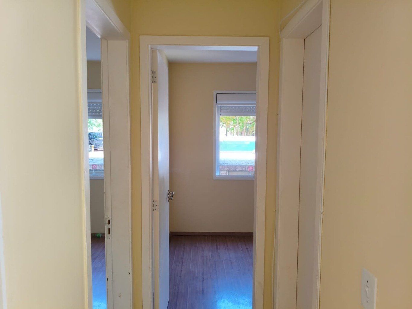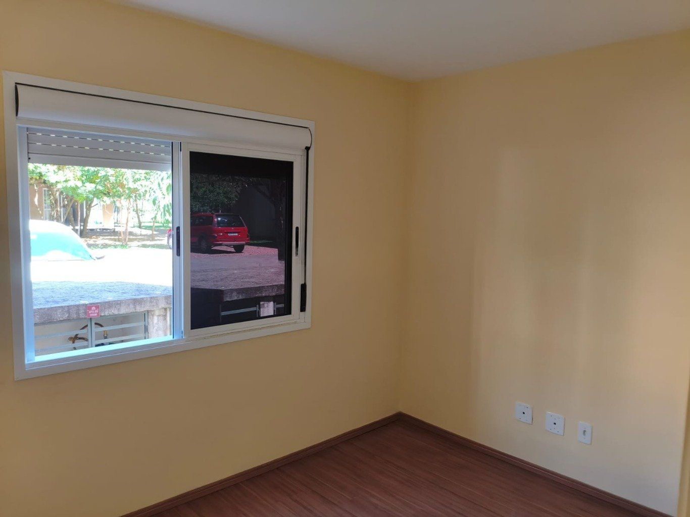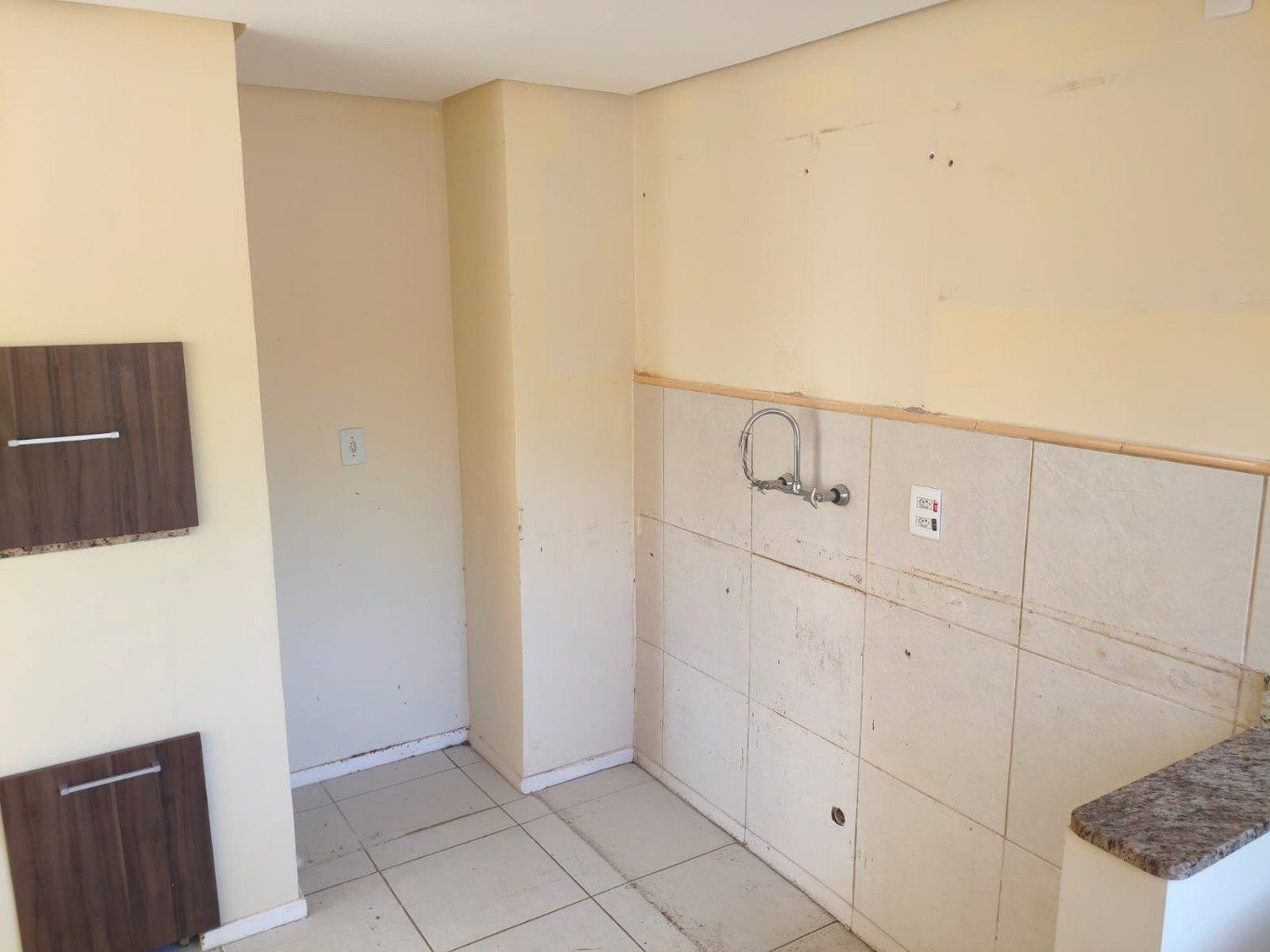 Apartamento térreo com 50m² e espera para água quente no chuveiro, pia da cozinha e lavanderia solar, 2 quartos, sala, cozinha e churrasqueira. Sala ampla, iluminada e ventilada, com janelas e piso cerâmico. Cozinha grande, arejada, com boa luz solar, toda em piso cerâmico, churrasqueira e janela grande. Lavanderia integrada à cozinha, ventilada e iluminada, com janelas grandes.