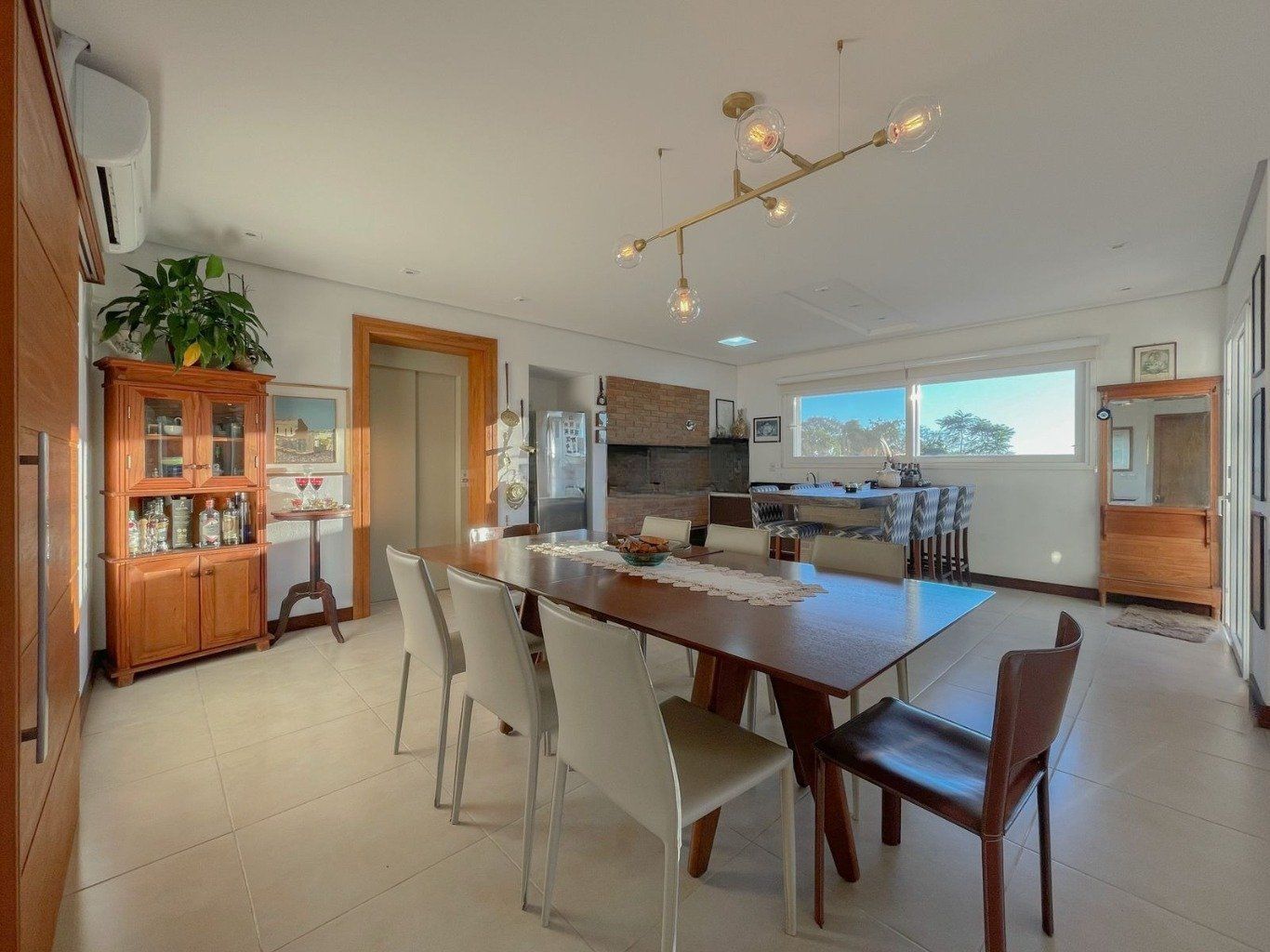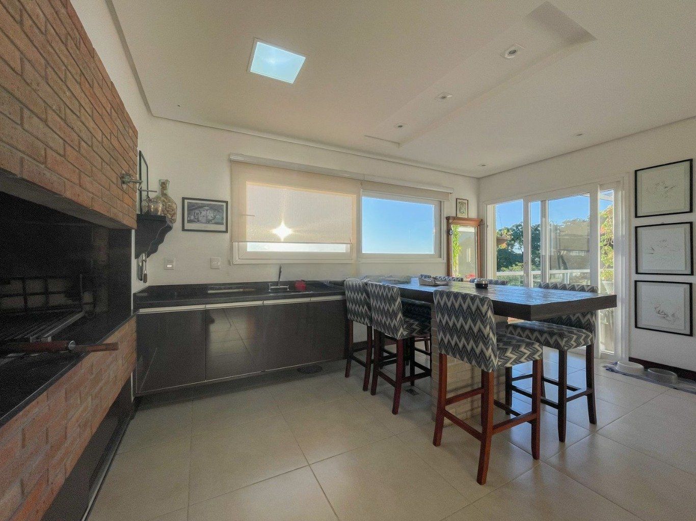 No terceiro pavimento, o living se transforma em um camarote exclusivo. A integração perfeita entre a cozinha gourmet, a churrasqueira e a lareira criam o ambiente ideal para receber, tudo isso emoldurado por uma vista panorâmica e inesquecível do Guaíba.