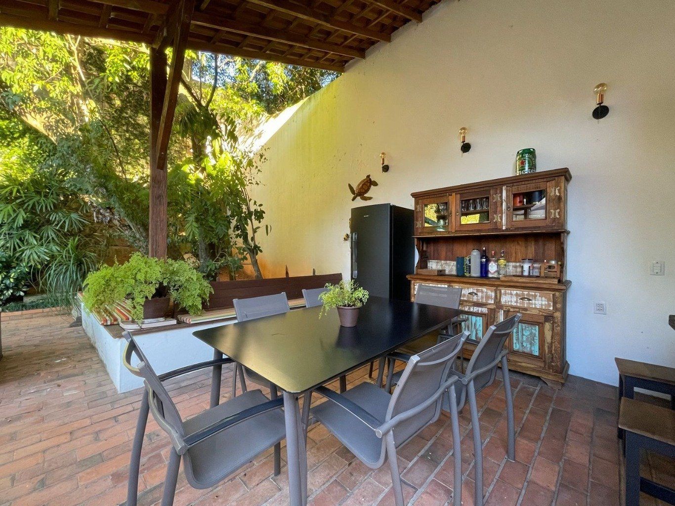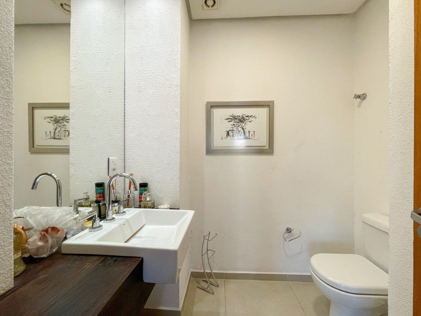 No Pavimento térreo garagem coberta para 4 carros, pátio com projeto de paisagismo exuberante, piscina aquecida, churrasqueira externa e banheiro de apoio. Área de serviço completa com dependência de empregada.