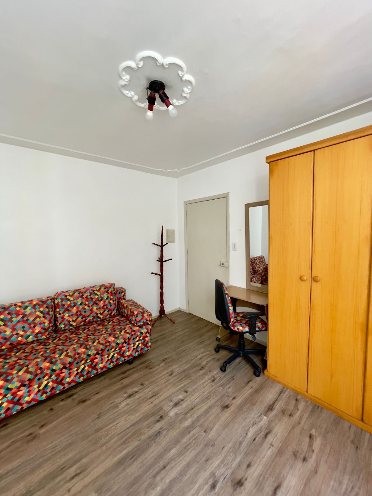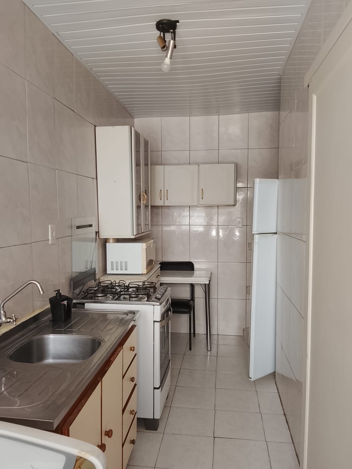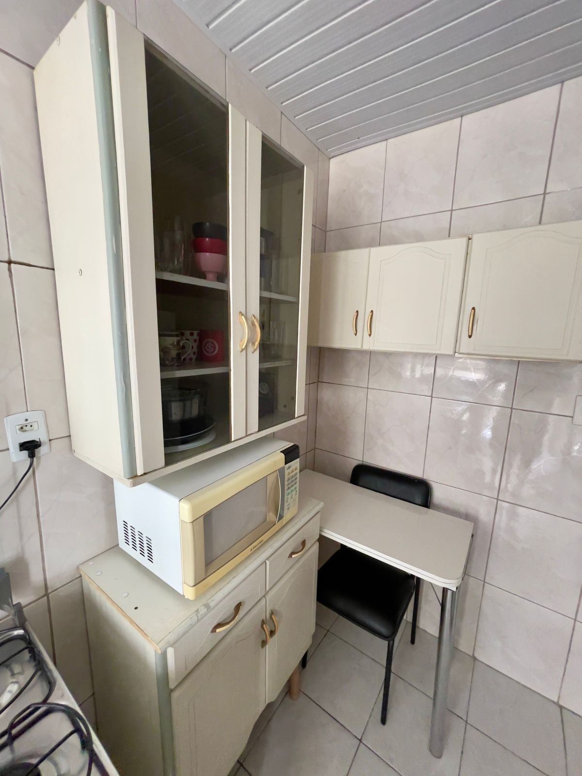 O apartamento, completamente mobiliado, também apresenta, cozinha equipada com armários, banheiro social e área de serviço.