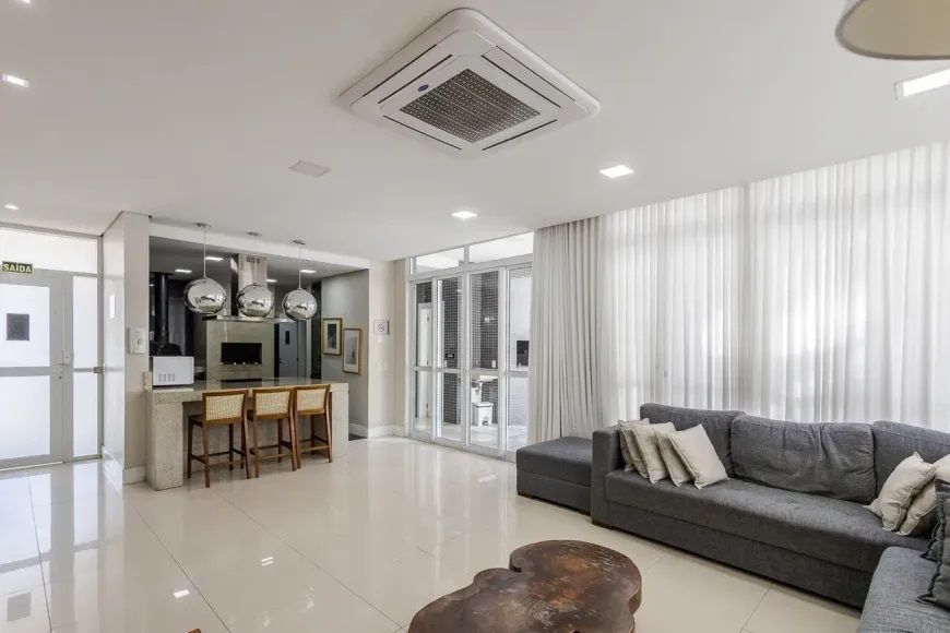 Apartamento andar alto, 12 andar com posição solar leste (sol da manhã), sacada com churrasqueira e sala com lareira (podendo integrar a sala com a sacada aumentando o living);