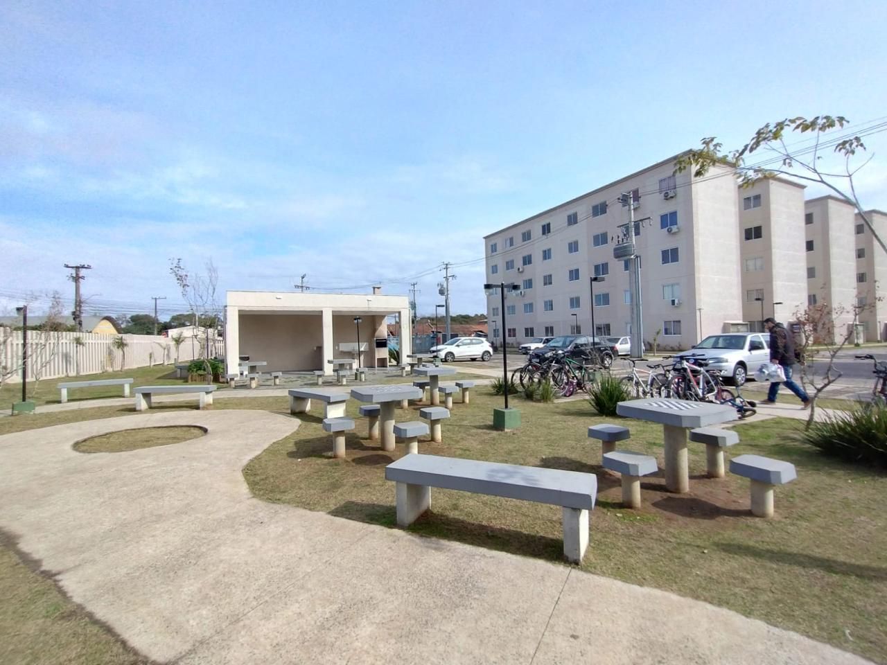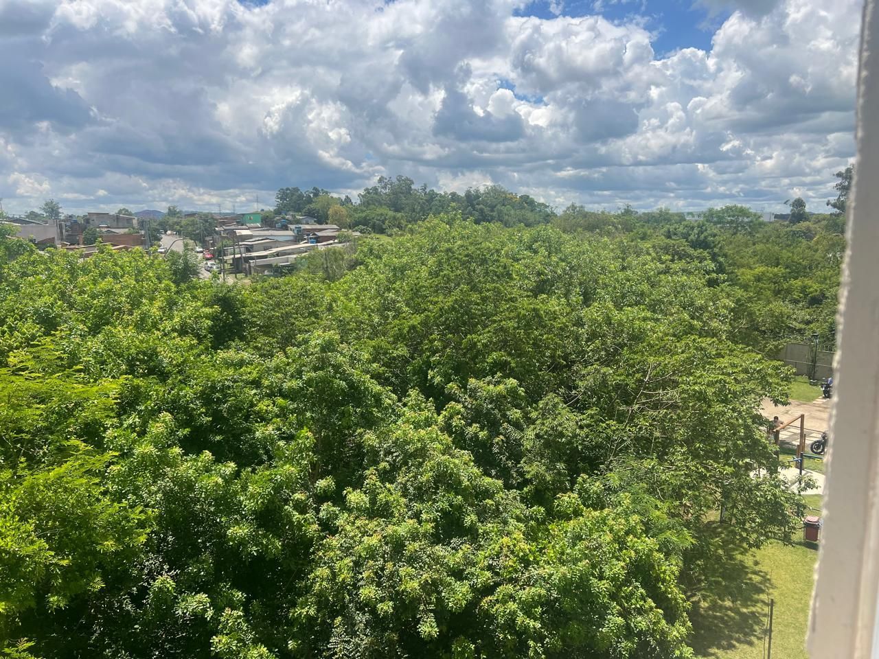 O imóvel conta com cortinas blackout, luminárias em led, piso laminado e vista para área verde