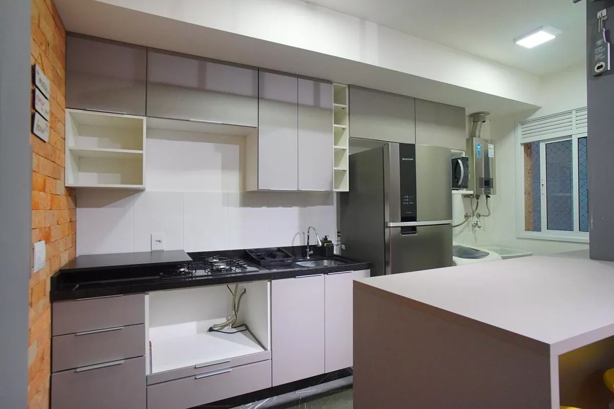 O imóvel possui 2 dormitórios, sendo 1 suíte, além de banheiro social. Living para dois ambientes, com integração entre sala de estar e jantar. Cozinha planejada com bancada em pedra São Rafael, armários sob medida e equipada com geladeira, cooktop, micro-ondas, máquina de lavar e junker. Área de serviço integrada e churrasqueira. Sacada com vista aberta.