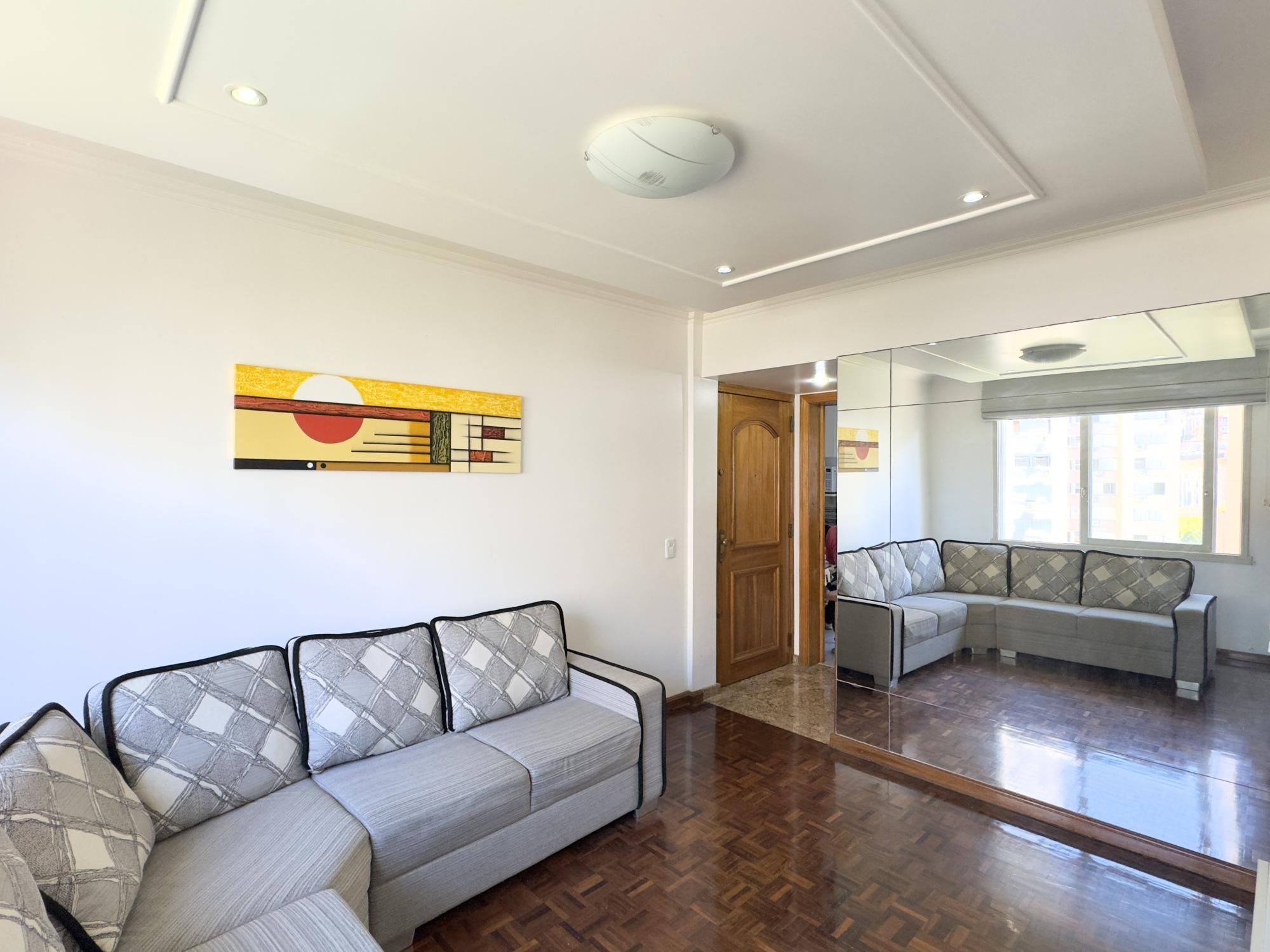 Apartamento mobiliado de 71m², 2 dormitórios, sendo 1 suíte com closet, living amplo e bem iluminado, cozinha com móveis sob medida, área de serviço separada com excelente espaço, 1 banheiro social (são 2 banheiros no total) e 1 garagem fechada. Imóvel em ponto alto da Duque de Caxias, com orientação solar Leste e Oeste, excelente ventilação cruzada e vista definida.