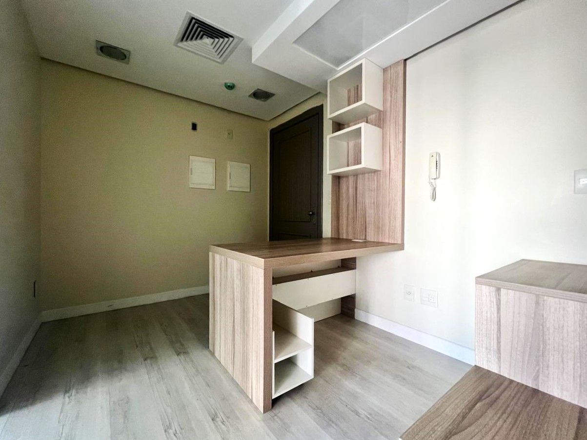 Sala semimobiliada, com móveis planejados - 41,84 m² de área privativa total e 1 vaga coberta.