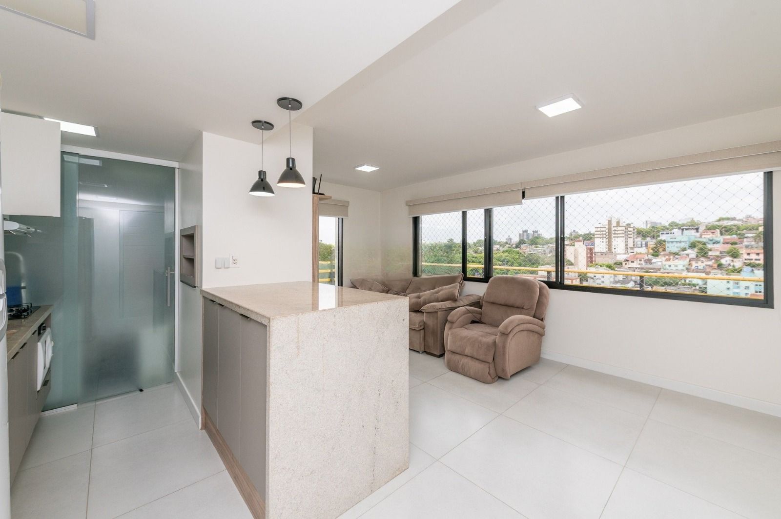 Apartamento de 2 dormitórios com suíte e semimobiliado, sacada com linda vista e privacidade, ensolarado e ventilado, living para 2 ambientes, cozinha americana com churrasqueira, área de serviço separada, box duplo coberto.
