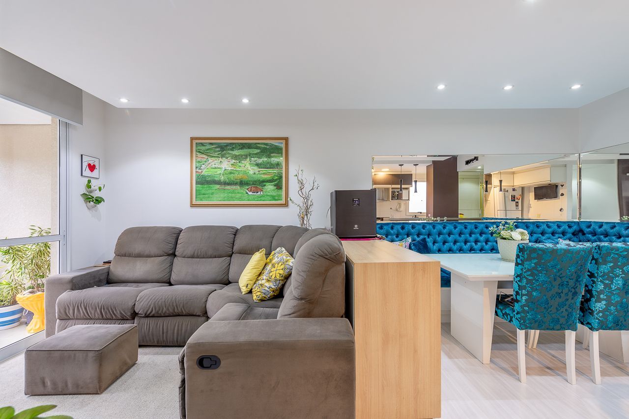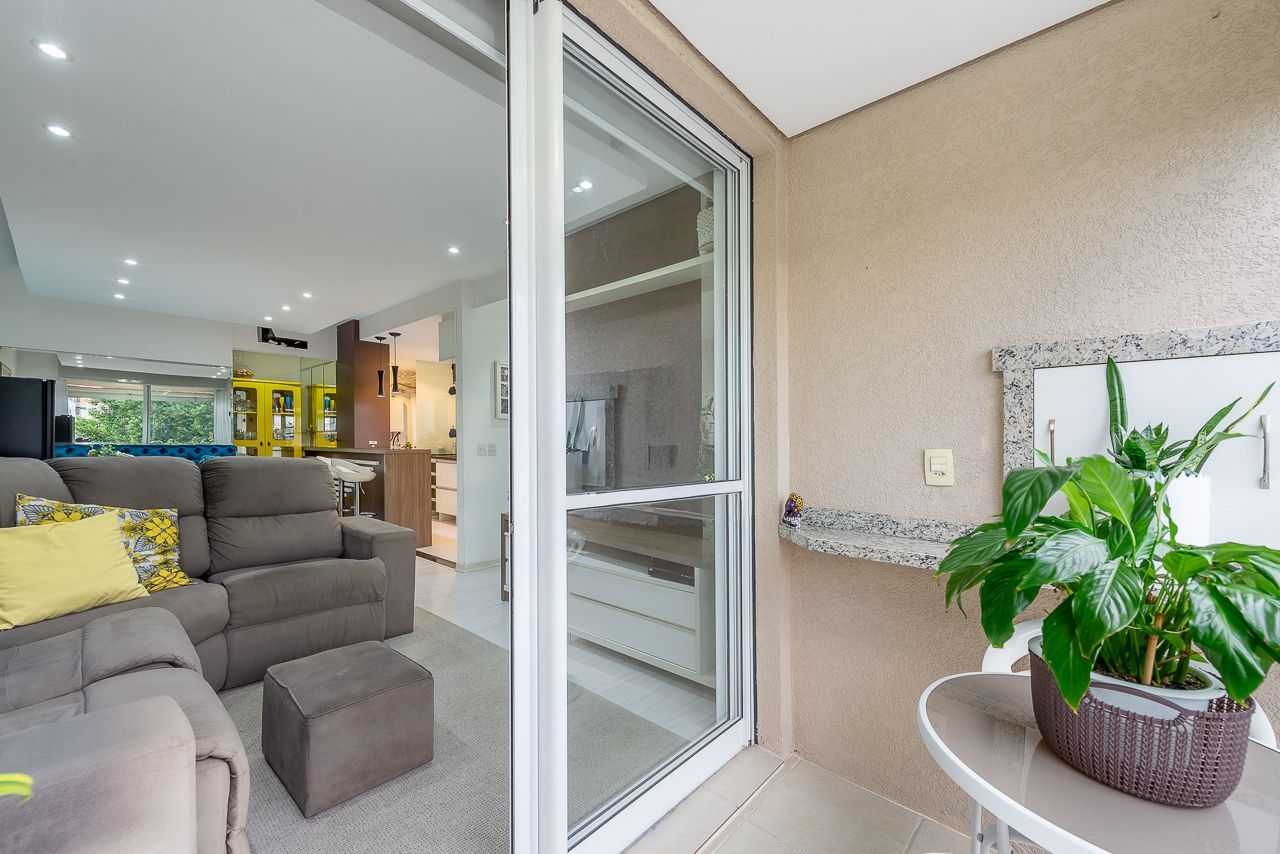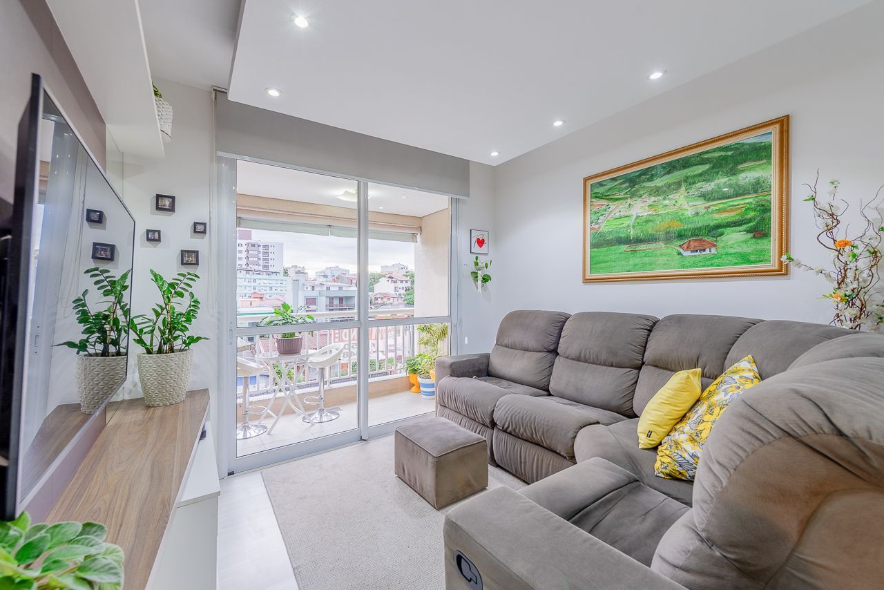 Apartamento semimobiliado com 73 m de área privativa com 2 dormitórios sendo 1 suíte, banheiro social, living amplo pra 3 ambientes com sacada e churrasqueira, cozinha americana planejada com área de serviço individual. Possui 1 vaga de garagem coberta e escriturada.