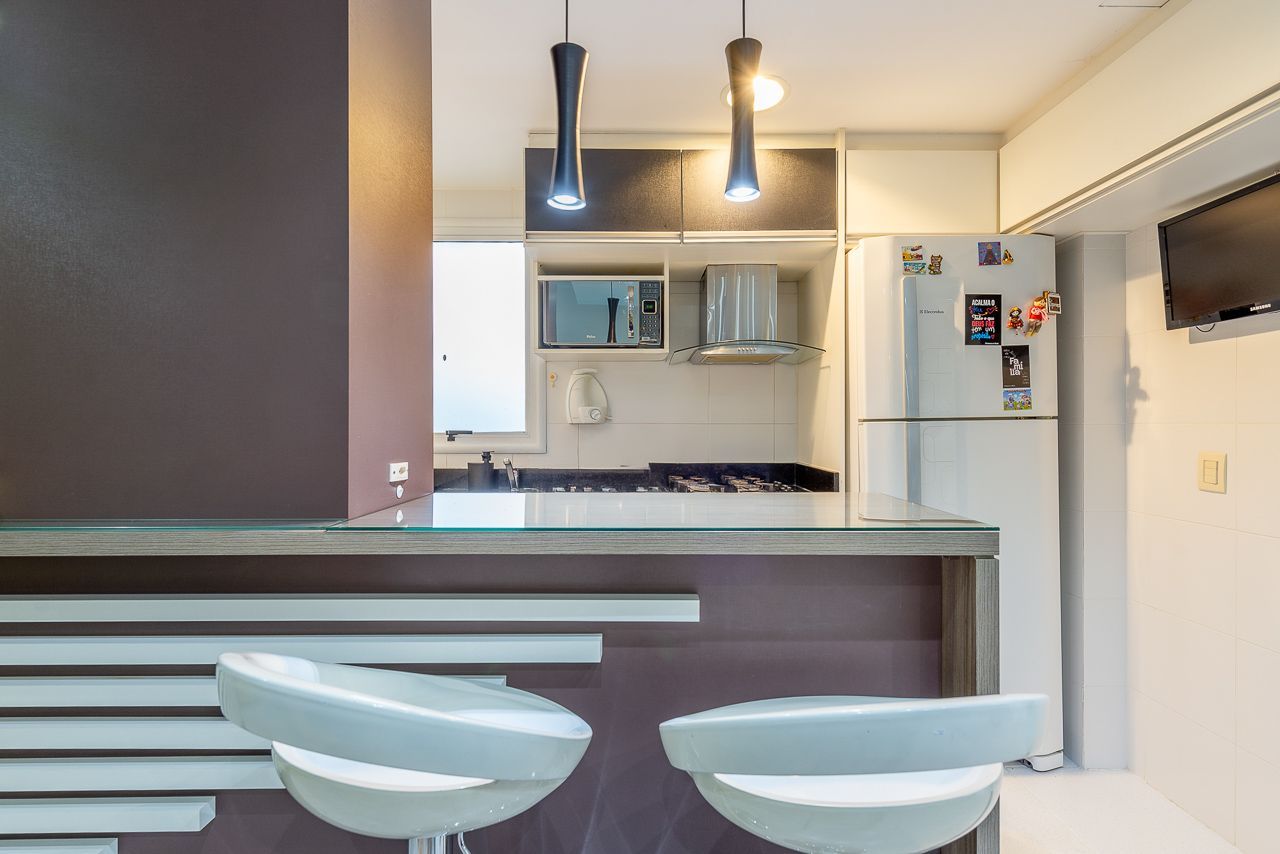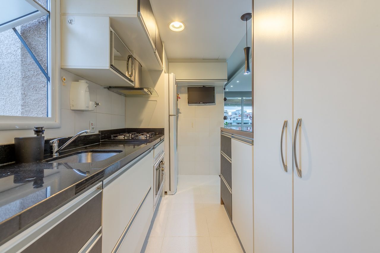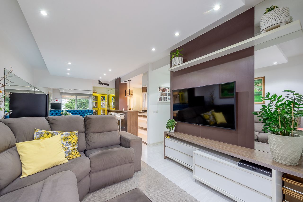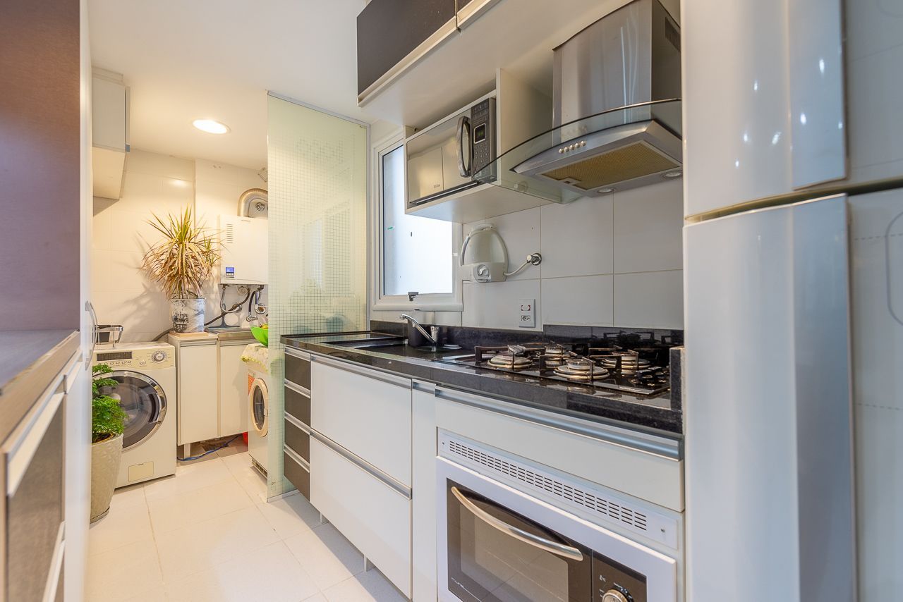 Apartamento semimobiliado com 73 m de área privativa com 2 dormitórios sendo 1 suíte, banheiro social, living amplo pra 3 ambientes com sacada e churrasqueira, cozinha americana planejada com área de serviço individual. Possui 1 vaga de garagem coberta e escriturada.