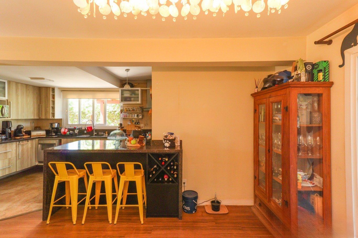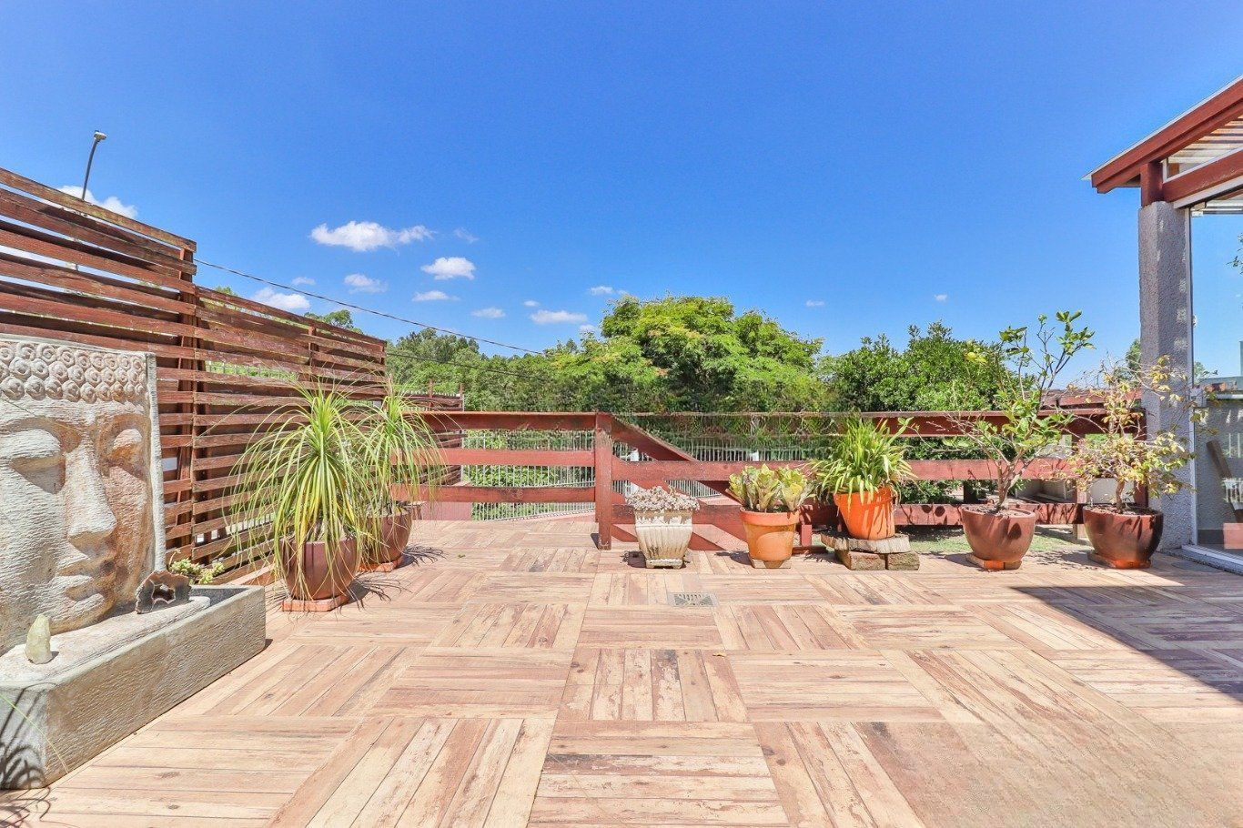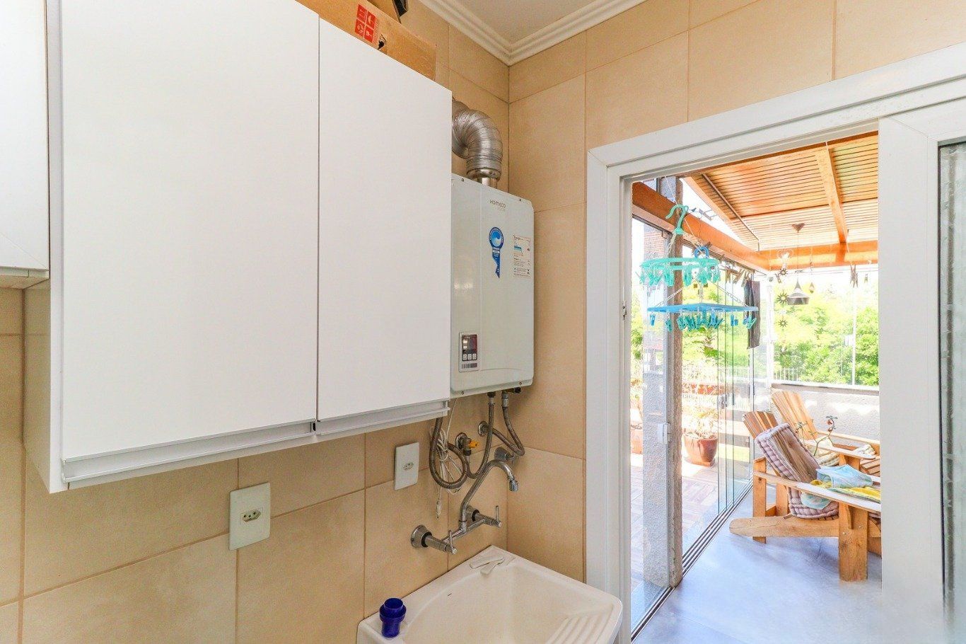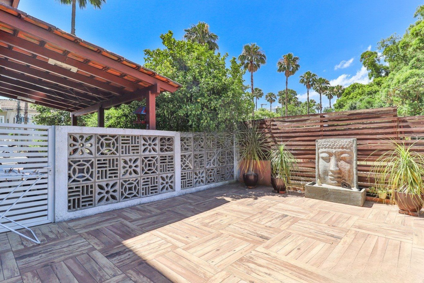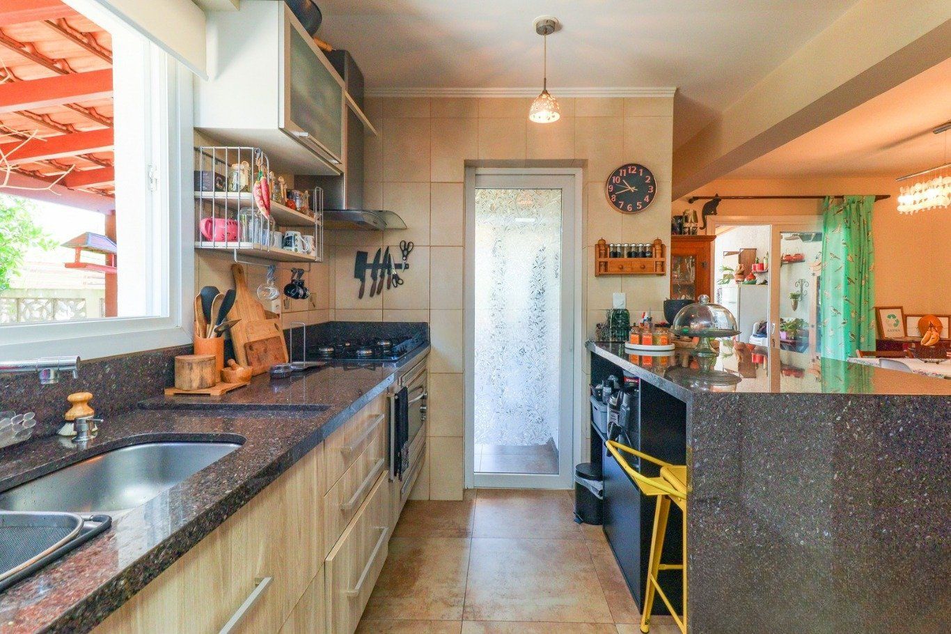 Possui vaga para até 3 carros, espaço gourmet com churrasqueira e fogão a lenha, além de amplo pátio com possibilidade de piscina privativa.