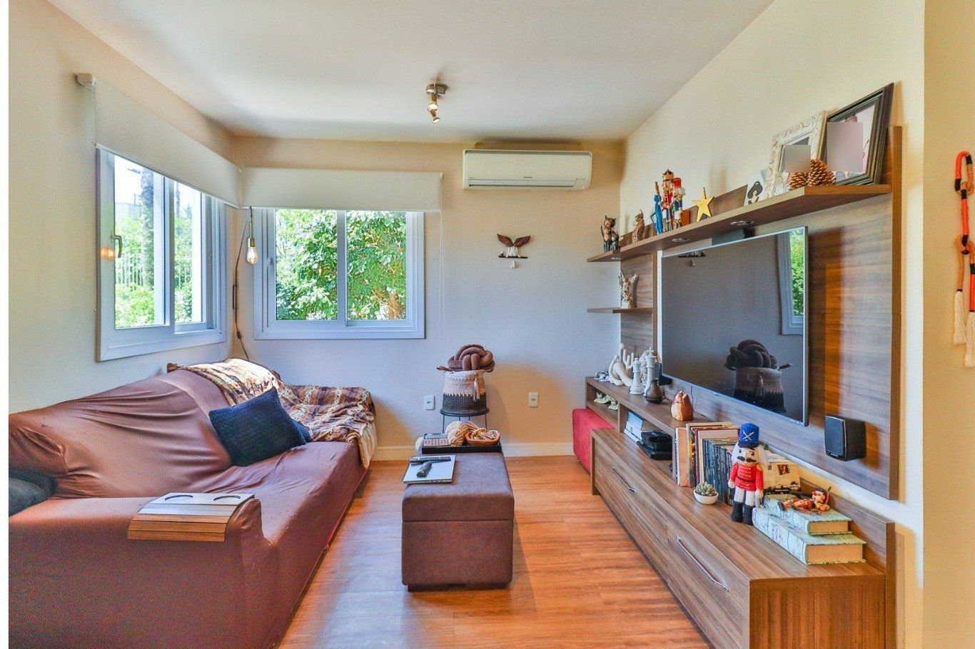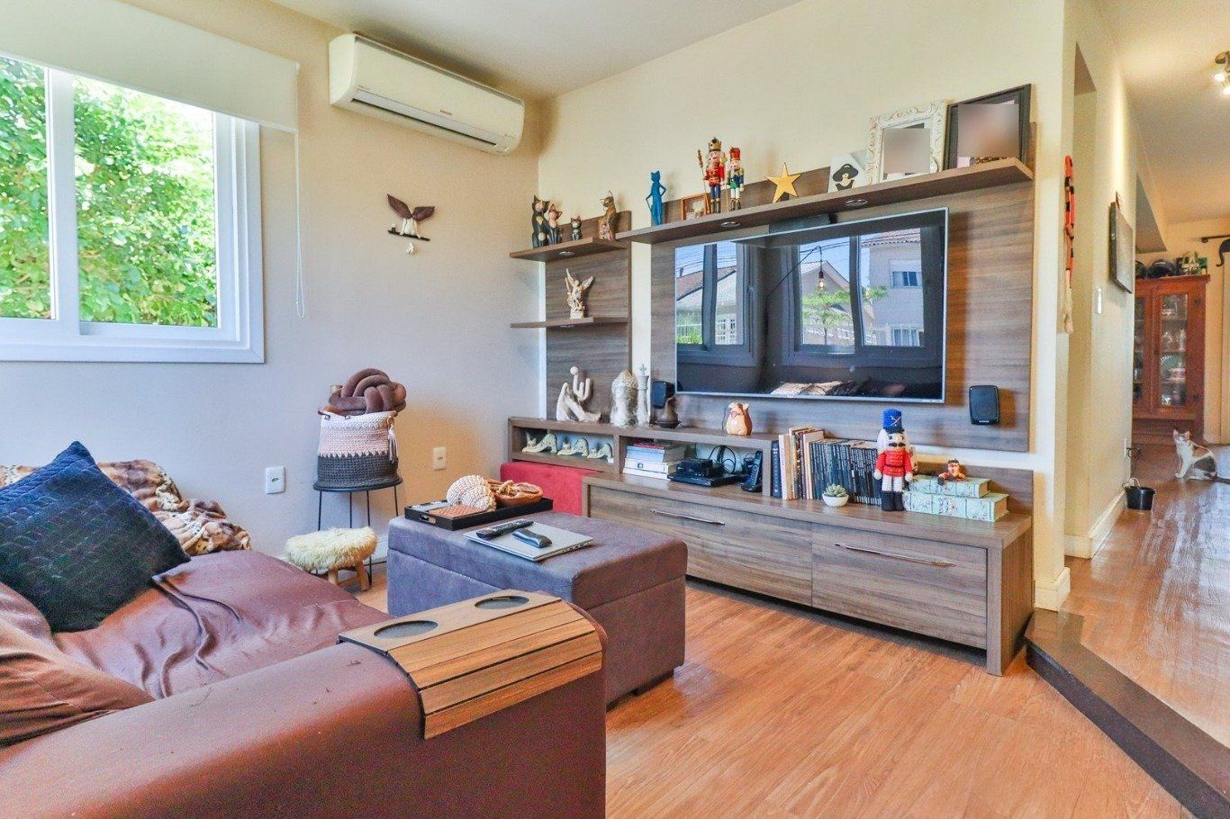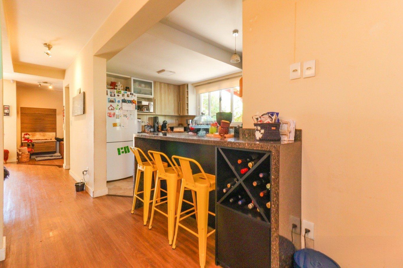Sala ampla com lareira a gás, cozinha americana integrada, lavabo e banheiro social. Imóvel com energia solar. Terceiro pavimento com espaço versátil, podendo ser utilizado como dormitório adicional ou home office.