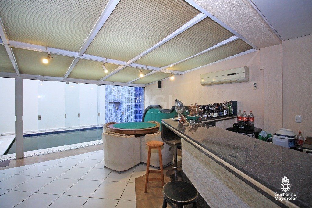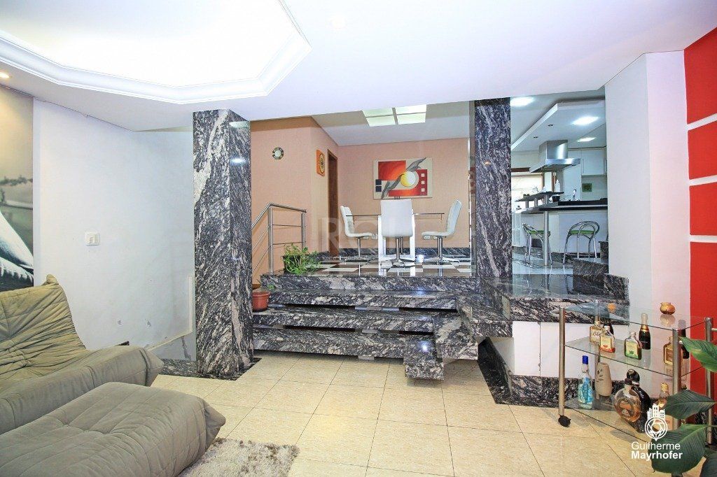 Duas salas de estar com lareira, lavabo, cozinha planejada, espaço gourmet com churrasqueira e acesso direto para piscina e garagem para 3 carros.