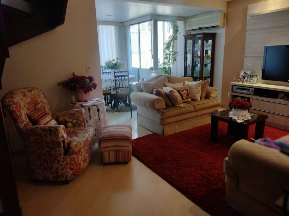 Cobertura semimobiliada, sacada, living estar e jantar, lareira, 2 dormitórios, sendo 1 suíte, cozinha com armários embutidos, área de serviço, dispensa, 3 banheiros. Aquecimento a gás, churrasqueira, espera para split.