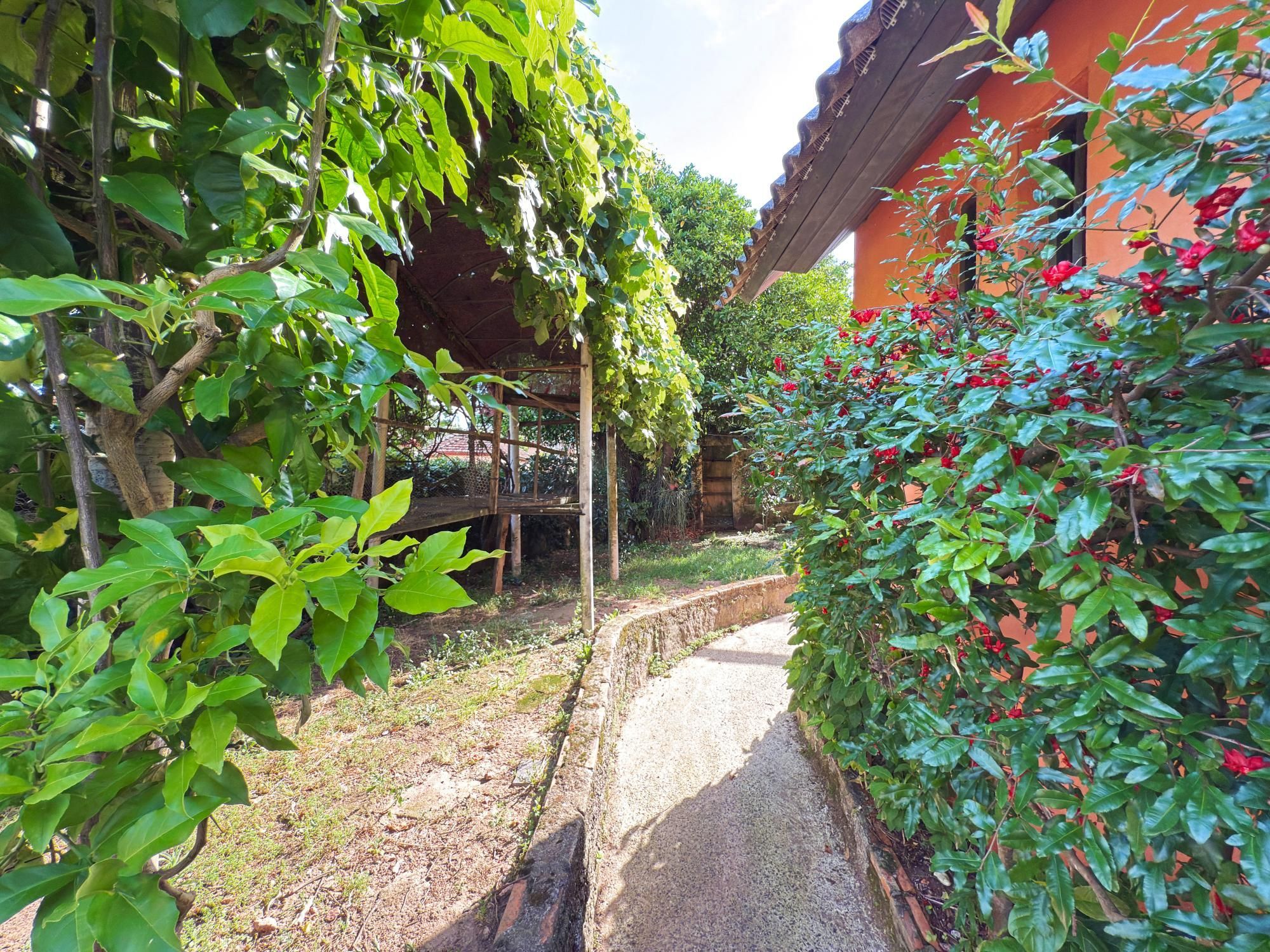 Pátio amplo com arvores frutíferas, área de lazer com churrasqueira, garagem para dois veículos.