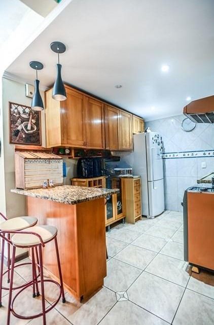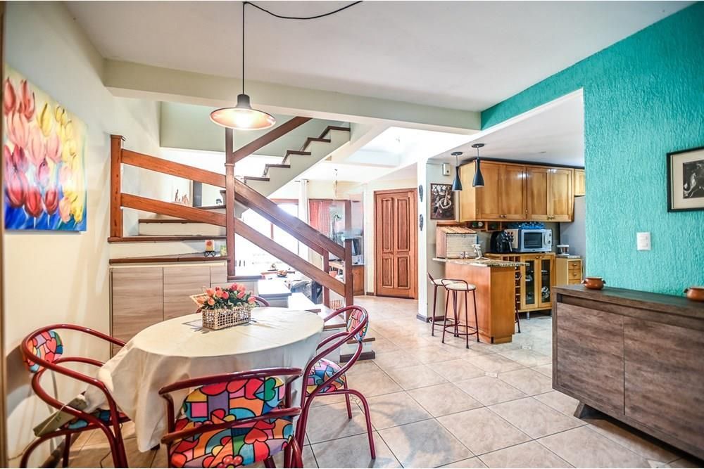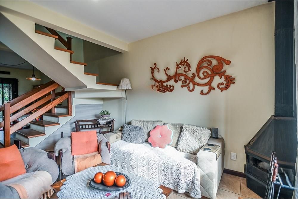 Casa em condomínio fechado com 166 metros privativos. Parte inferior: ampla sala com dois ambientes, lareira e janelas grandes. Cozinha americana com área de serviço separada. Lavabo. Parte superior com 2 dormitórios. Um deles com suíte e closet e sacada. No terceiro andar um sotão.