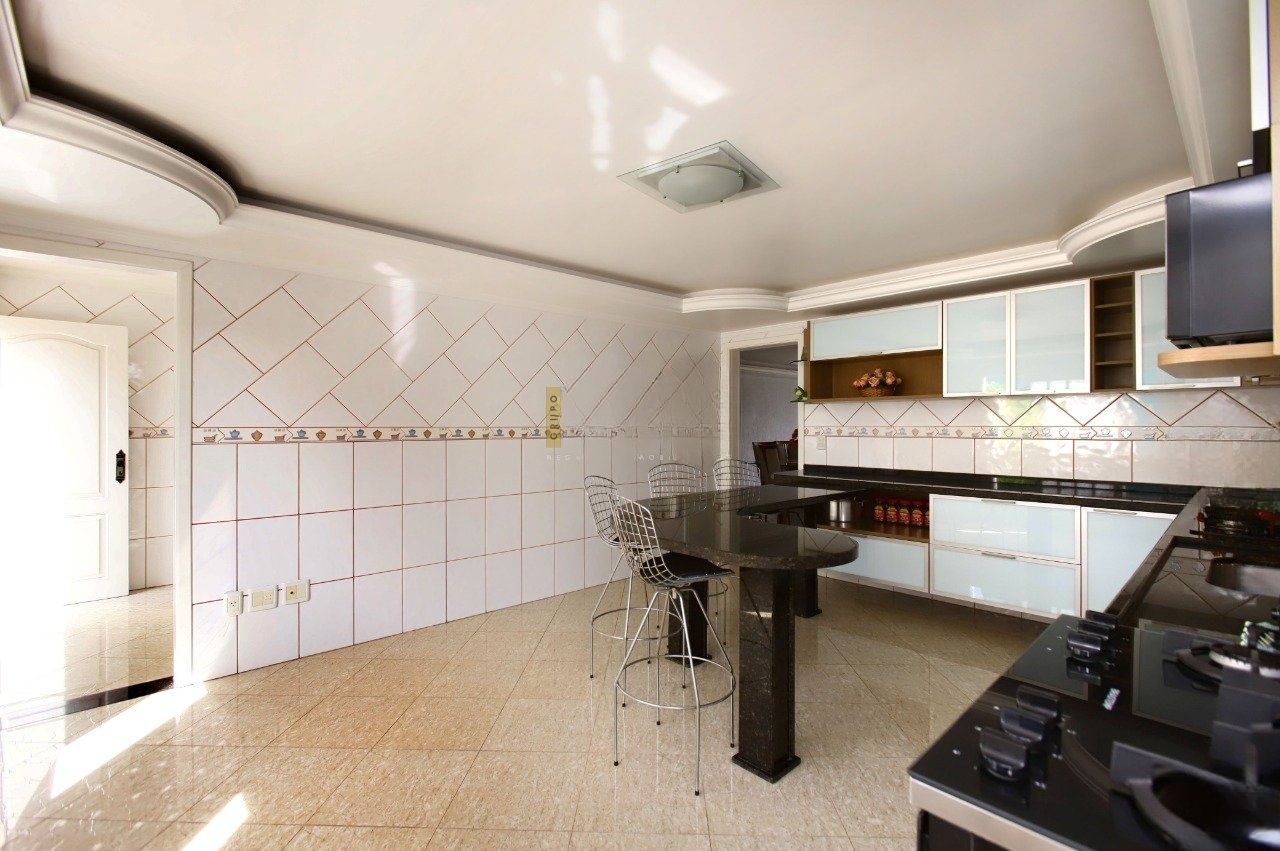 Cozinha espaçosa com bancada e móveis sob medida.