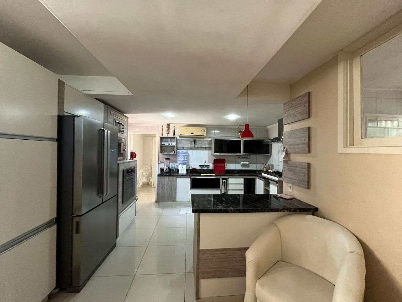 Cozinha ampla com lavanderia e dispensa em peças separadas. Acesso para um escritório da parte térrea, com banheiro.
