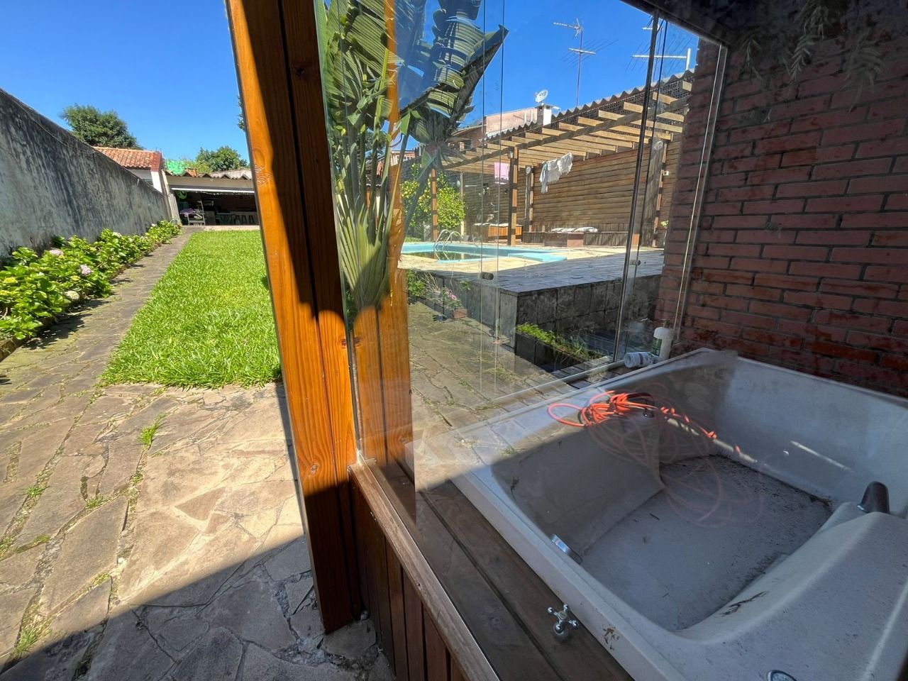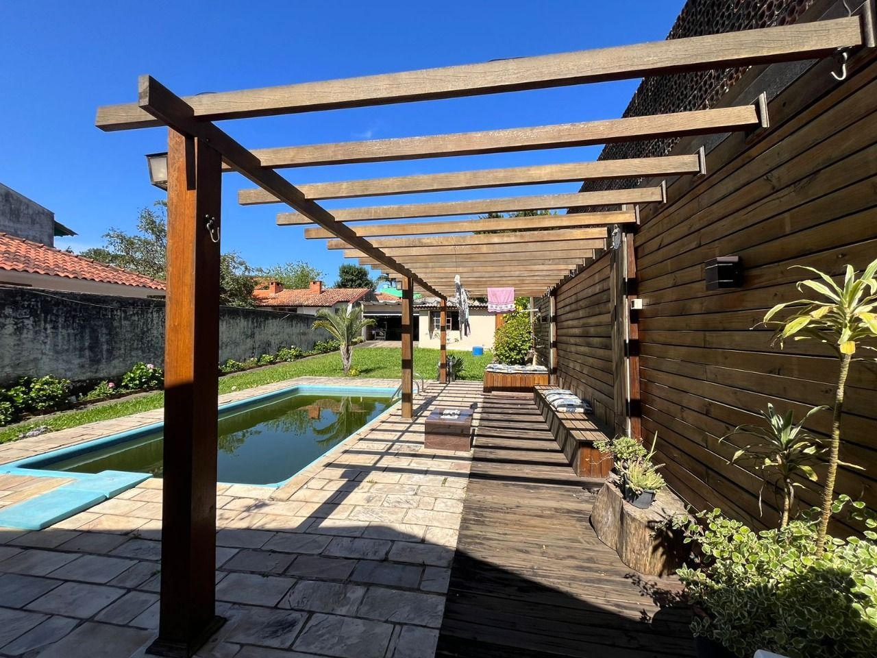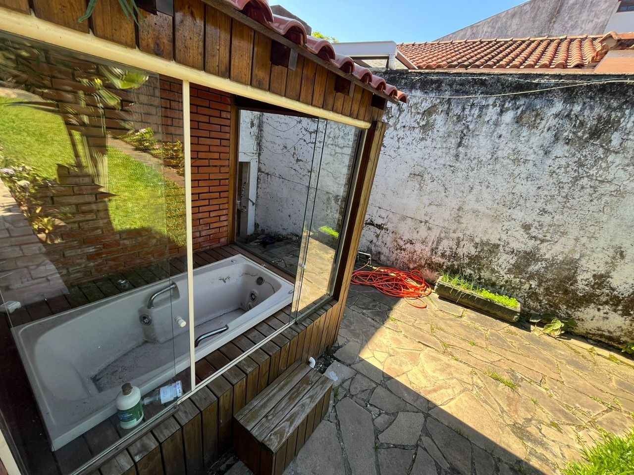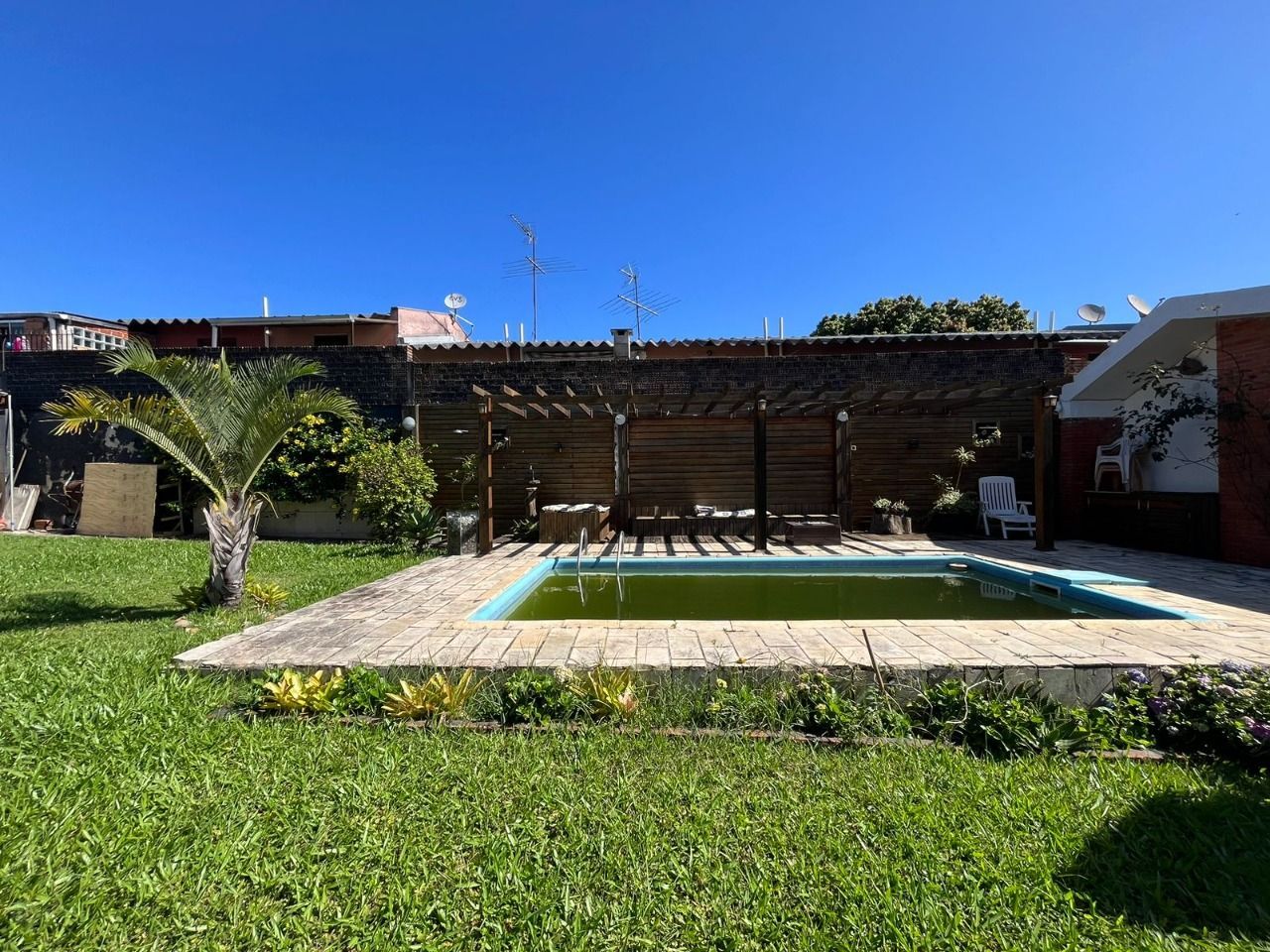 Terreno maravilhoso, super bem cuidado, com pátio enorme com piscina e deck. Nos fundos da casa um enorme salão de festas com espaço com churrasqueira, banheiro e 2 peças separadas. No pátio você também uma charmosa banheiro envidraçada.