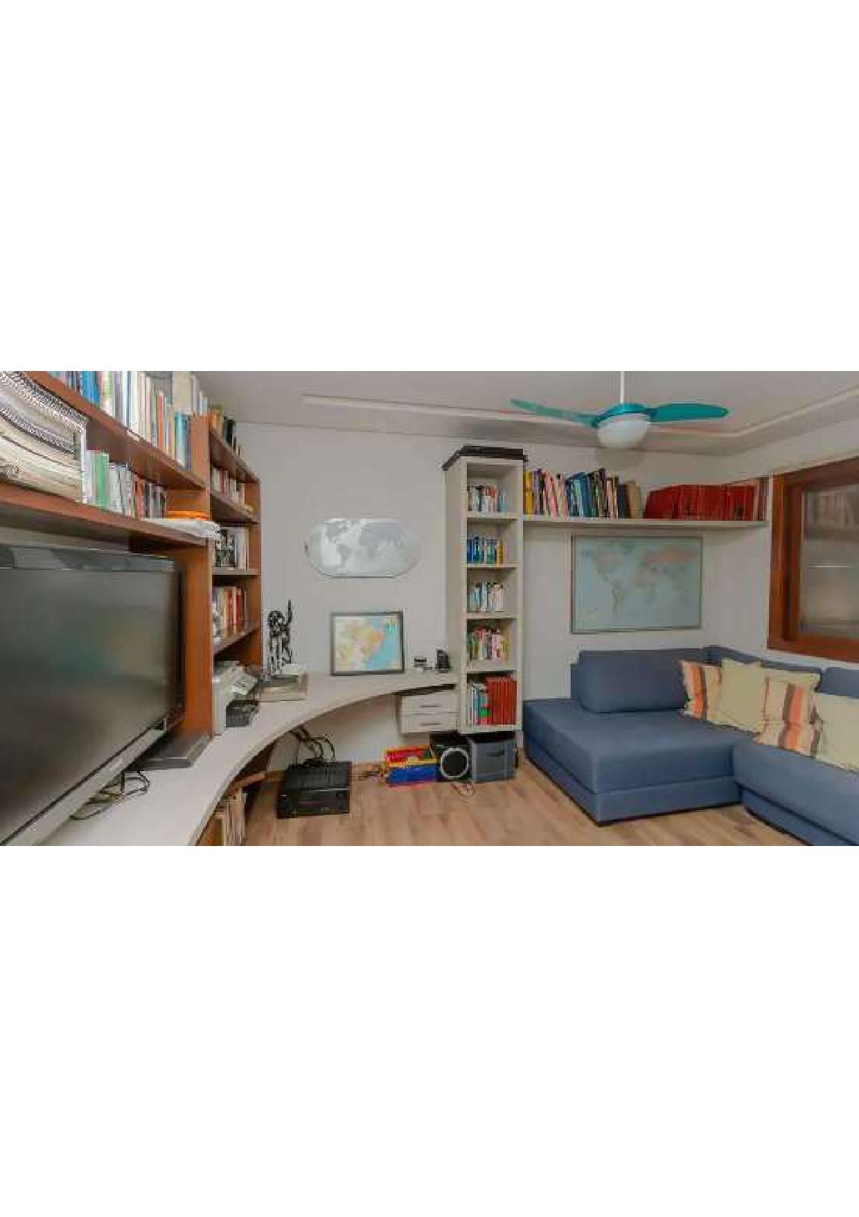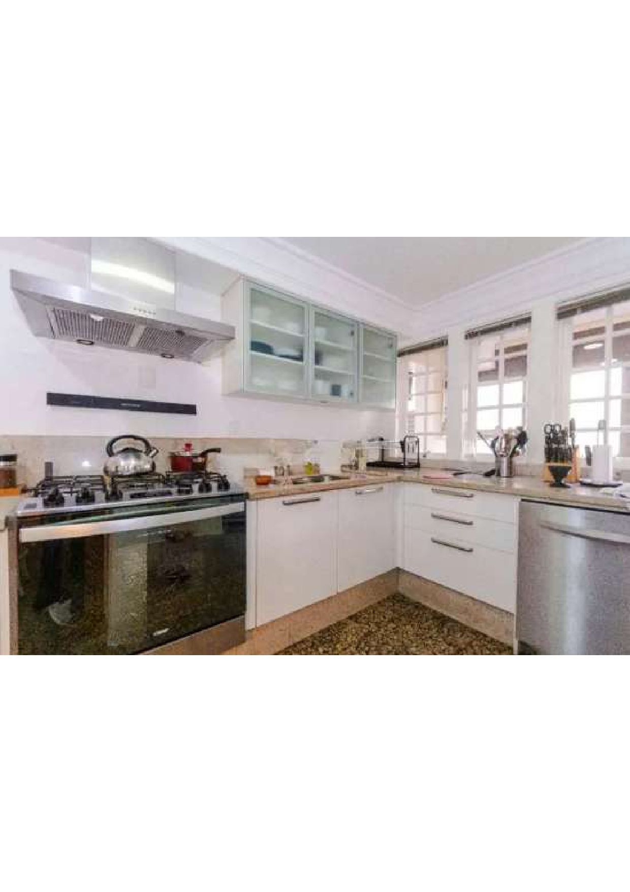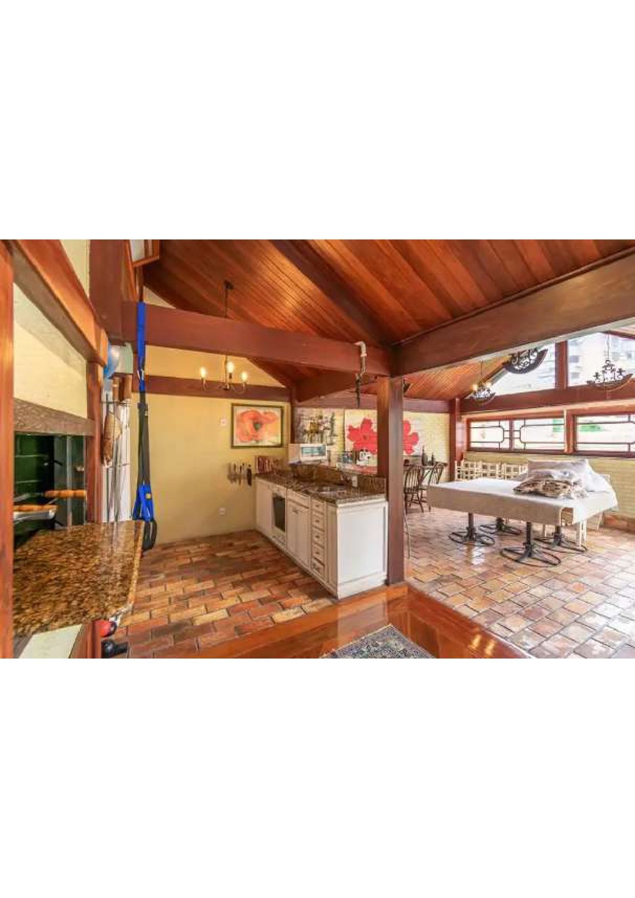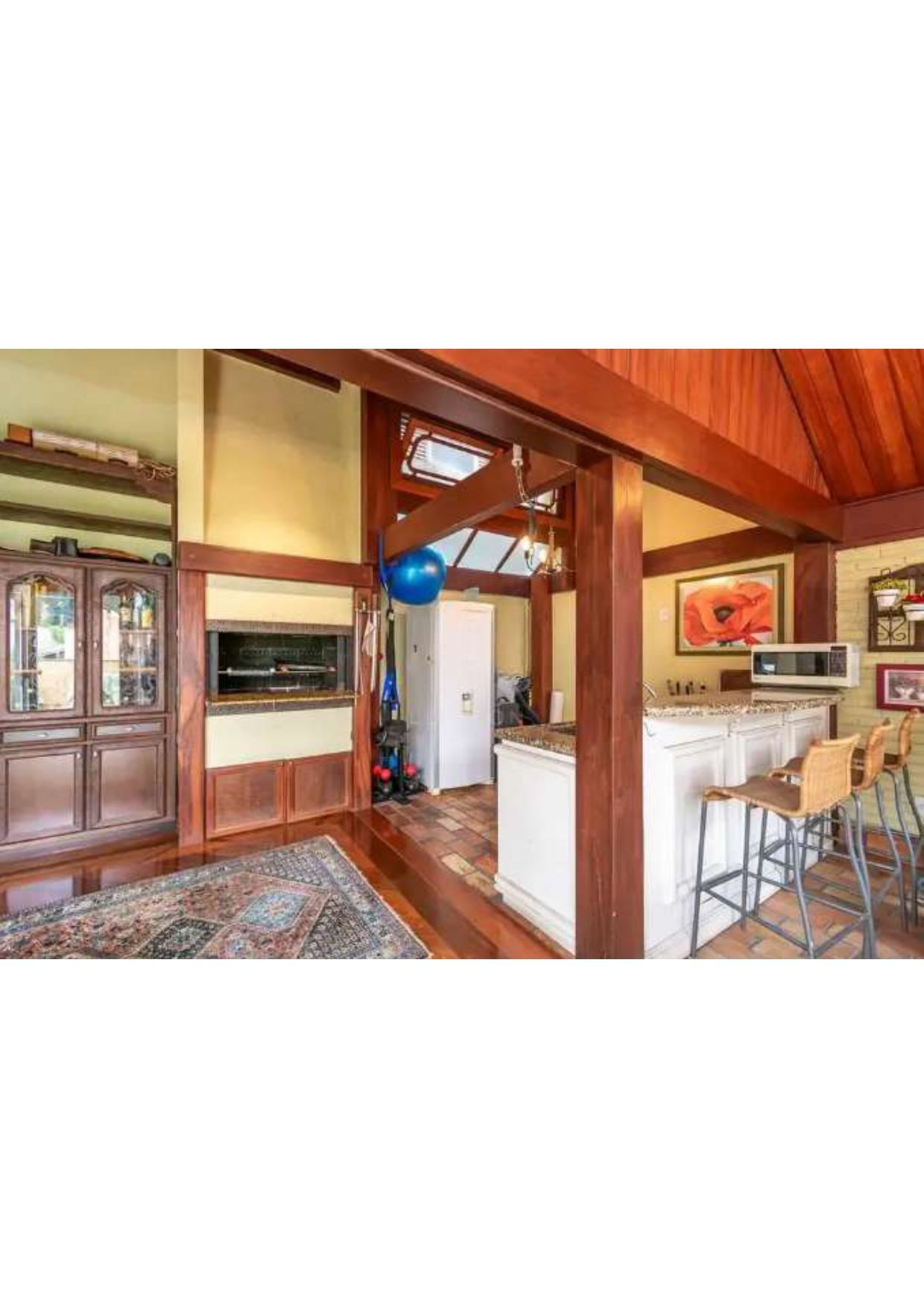 Hall de entrada, lavabo, living 3 ambientes com lareira com ótima luminosidade e muito sol, piso tabuão, cozinha/copa montada e dependência de emprega completa.